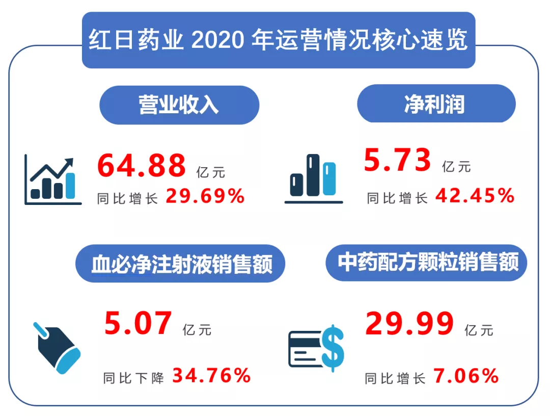 2020年,红日药业实现营业收入64.88亿元,同比增长29.69%,实现利润总额6.83亿元,同比增长41.07%。对此红日药业称:各项经营计划顺利进行。