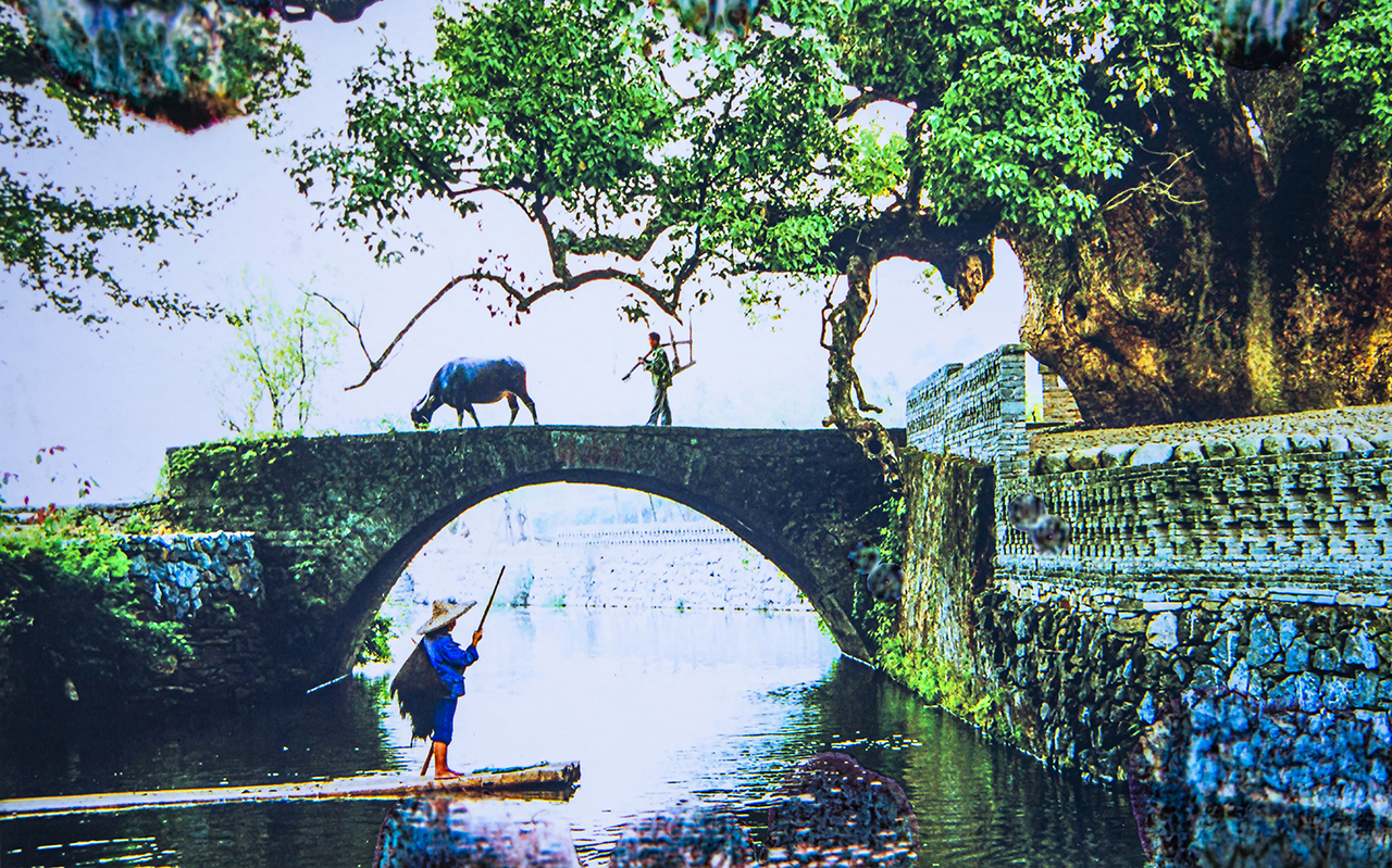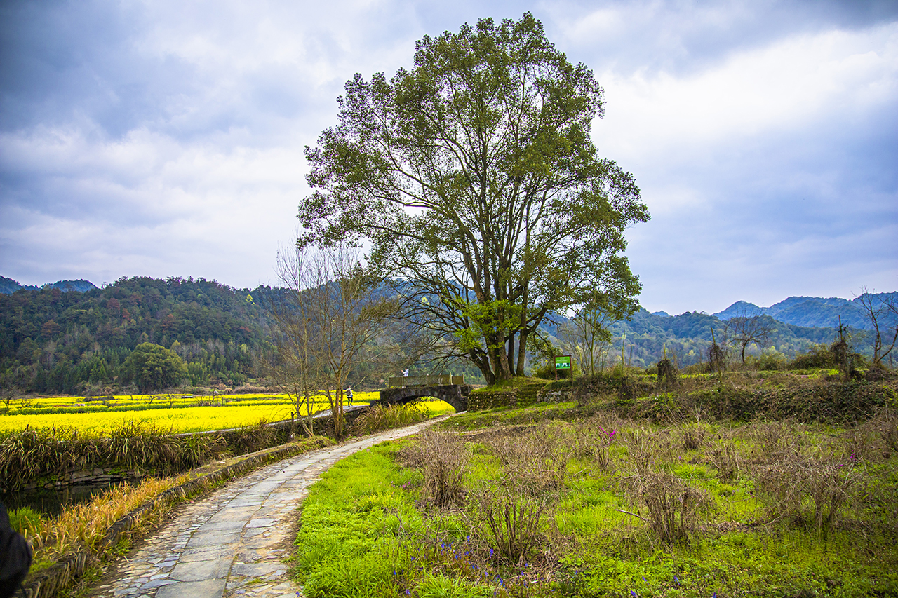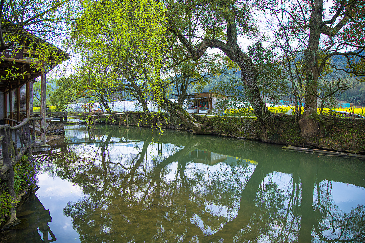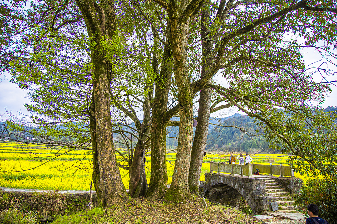 严田古樟民俗园里,走在乡间的小路上感受如梦境般的田园生活,走进婺源严田村,映入眼帘的第一幅画卷,就是枝繁叶茂的古樟边,渔夫披着蓑衣戴着斗笠撑着竹排缓缓前行,老农牵着耕牛走过石拱桥暮归的动人场面。走红网络经久不衰的经典照片就是在此地取景拍摄。