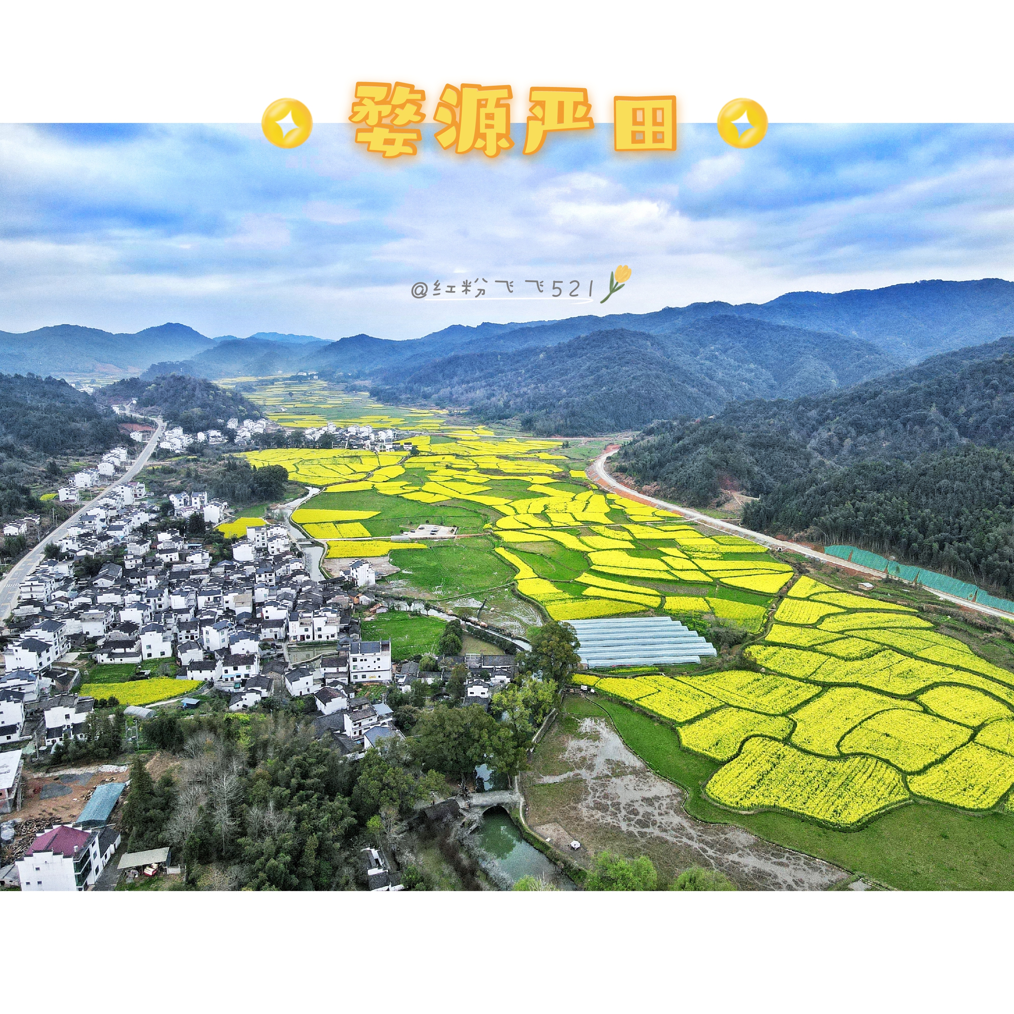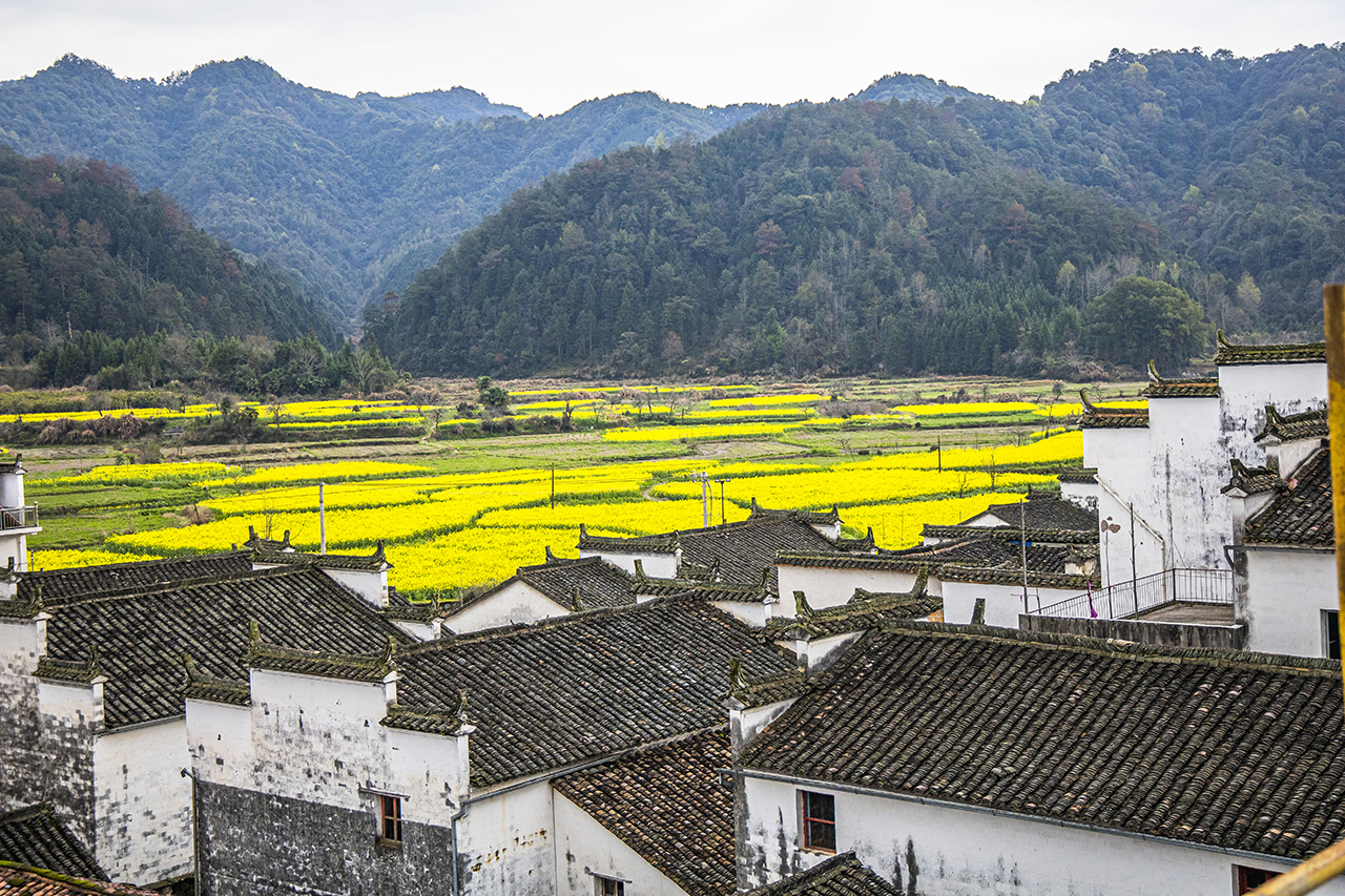 浪漫古镇,多彩赋春。从武汉出发至婺源,再驱车前往赋春,第一站就是赋春严田村。因为婺源县古时属于徽州,所以这里一直保存着完好的徽派建筑,每年的3至4月数万亩油菜花共同绽放,在蓝天下或是氤氲云雾中,与白墙青瓦形成了让人无比向往的,美妙的田园画卷。