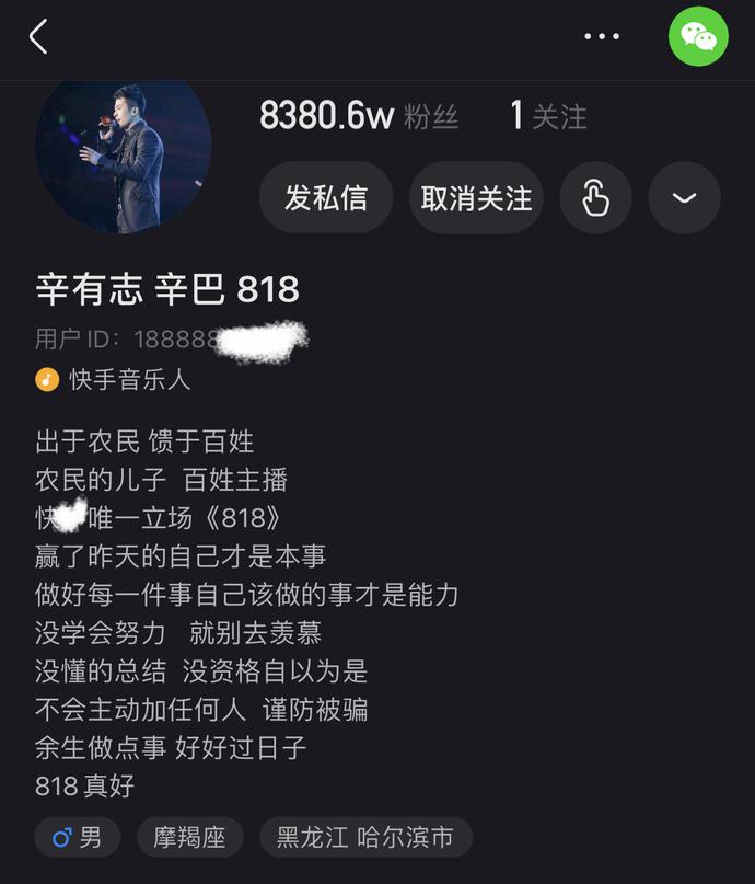 辛巴的人设是“农民的儿子”,自诩性格豪爽,有什么说什么。开始可能还有人愿意跟随,随着时间的推移,一些观众兴许受不了他的“豪爽直言”。