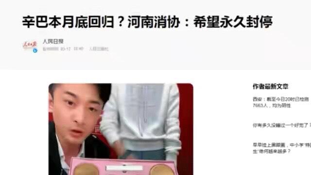 河南消费者协会也发文希望封停辛巴账号。连人民日报都转发河南消协的文章“辛巴回归?希望封停。”