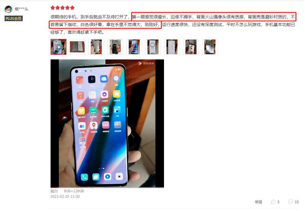 因此,很多拿到真机使用的消费者,对OPPO Find X3系列的设计水准都表示了高度认可,很多用户认为产品的价值与品质是对等的,真机体验是真的不错,手感十分舒适,拿在手上科技感十足。也有用户表示背面火山摄像头设计真的很有质感,而且背壳材质也很高级,磨砂质感十分温润,而且还不轻易沾染指纹。这样看来,无论是造型还是材质都深得用户的芳心,质感确实值得肯定。