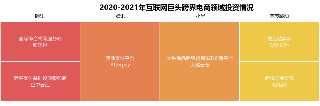 字节跳动的频繁动作,印证了其2021年将在跨境电商业务发力的传言。而同样参与帕拓逊交易的小米,以及阿里、腾讯、京东等互联网大厂,也早已把触手伸向了跨境电商领域。
