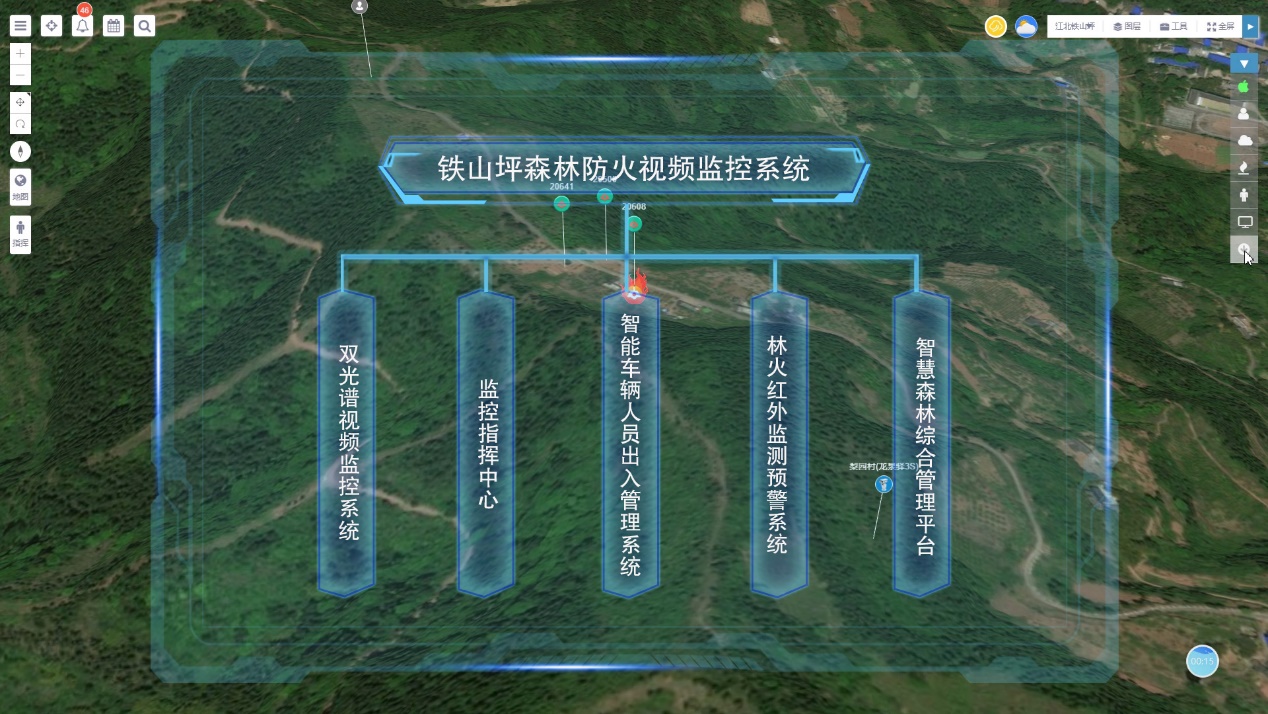 针对重庆市江北区铁山坪森林防火的实际需求,通过实地勘察并深入调研项目情况,海纳云·艾帝安依托自主研发的AIoT平台,为其量身定制了一套森林防火视频监控系统解决方案,综合运用物联网、云计算、人工智能、大数据等新一代信息技术,通过建设“一张网、一平台、一中心”,融合视频分析、地表火探测、智能管控、3D高清卫星图以及决策指挥等模块,形成全覆盖、一体化、智能化的智慧森林防火监测管理体系,加强森林火灾预防、扑救和保障三大体系建设,全力打造重庆江北区的森林防火示范标杆项目。