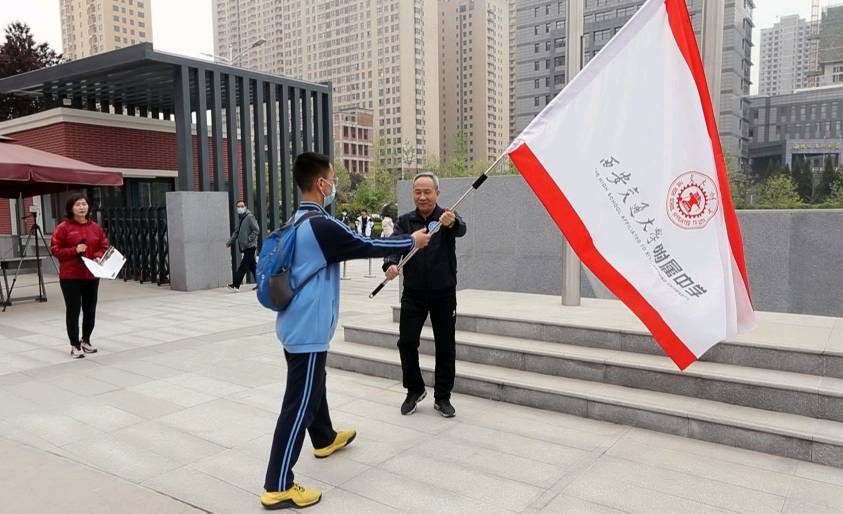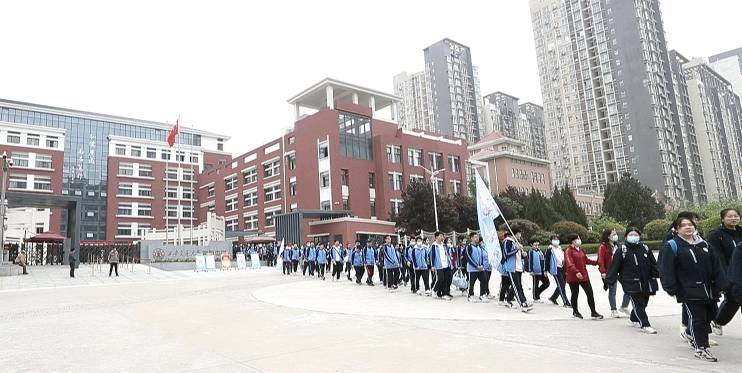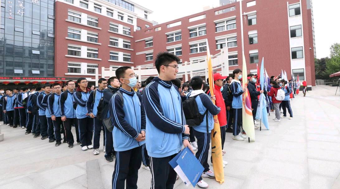 随着学生代表高一一班田景云同学从德育处李波主任手中接过旗帜后,此次研学活动正式开拔。
