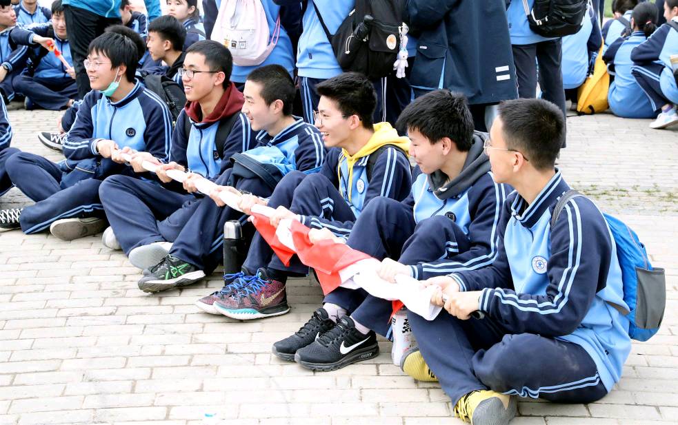 抬望眼,青松郁郁,翠竹婆娑,青草萋萋,早樱灿烂。师生心旷神怡,喜洋洋者矣。步行的路上,没有喊累、没有掉队,有的是坚定的步伐和相互鼓励的话语。即使汗流浃背,也没有人放慢自己的脚步。那一条条蓝色校服染成的长龙就这样穿梭在高楼大厦间直至目的地。来到植物园内,正值第29届郁金香节,游客如织。孩子们放下沉重的书包,恣意地亲近自然,享受春风,时而与陕北秧歌锣鼓队的舞者们一起共舞,时而与平日讲台上的老师们畅叙幽情,时而参与久违的童年游戏。手边的一花一草一木都可以使孩子们驻足、观赏、探究,仿佛是开阔的生物物种探究课堂。