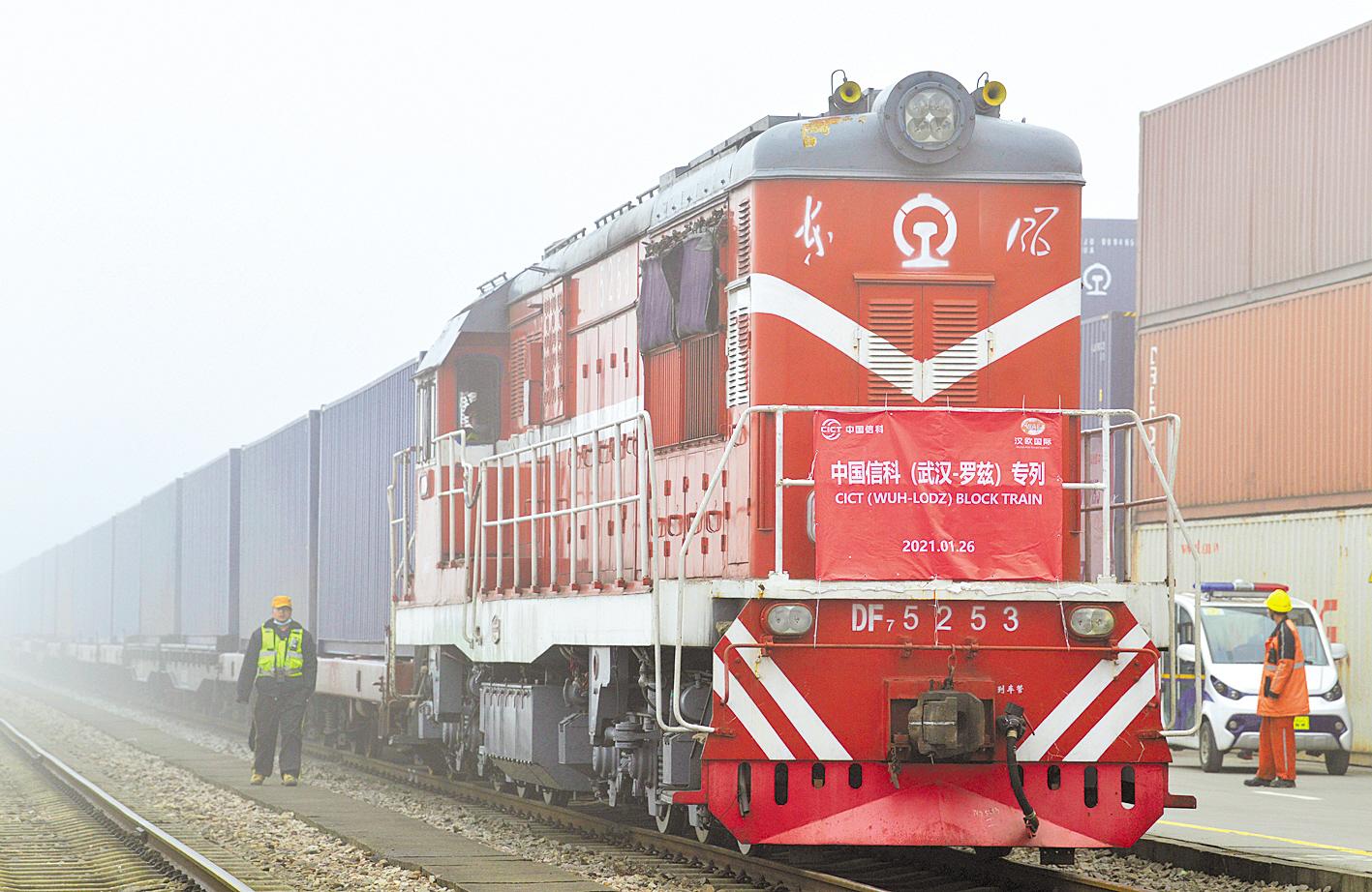 1月26日,满载通信产品的中欧班列从武汉开往波兰罗兹。 (湖北日报全媒记者 倪娜 通讯员 王遥遥 摄)