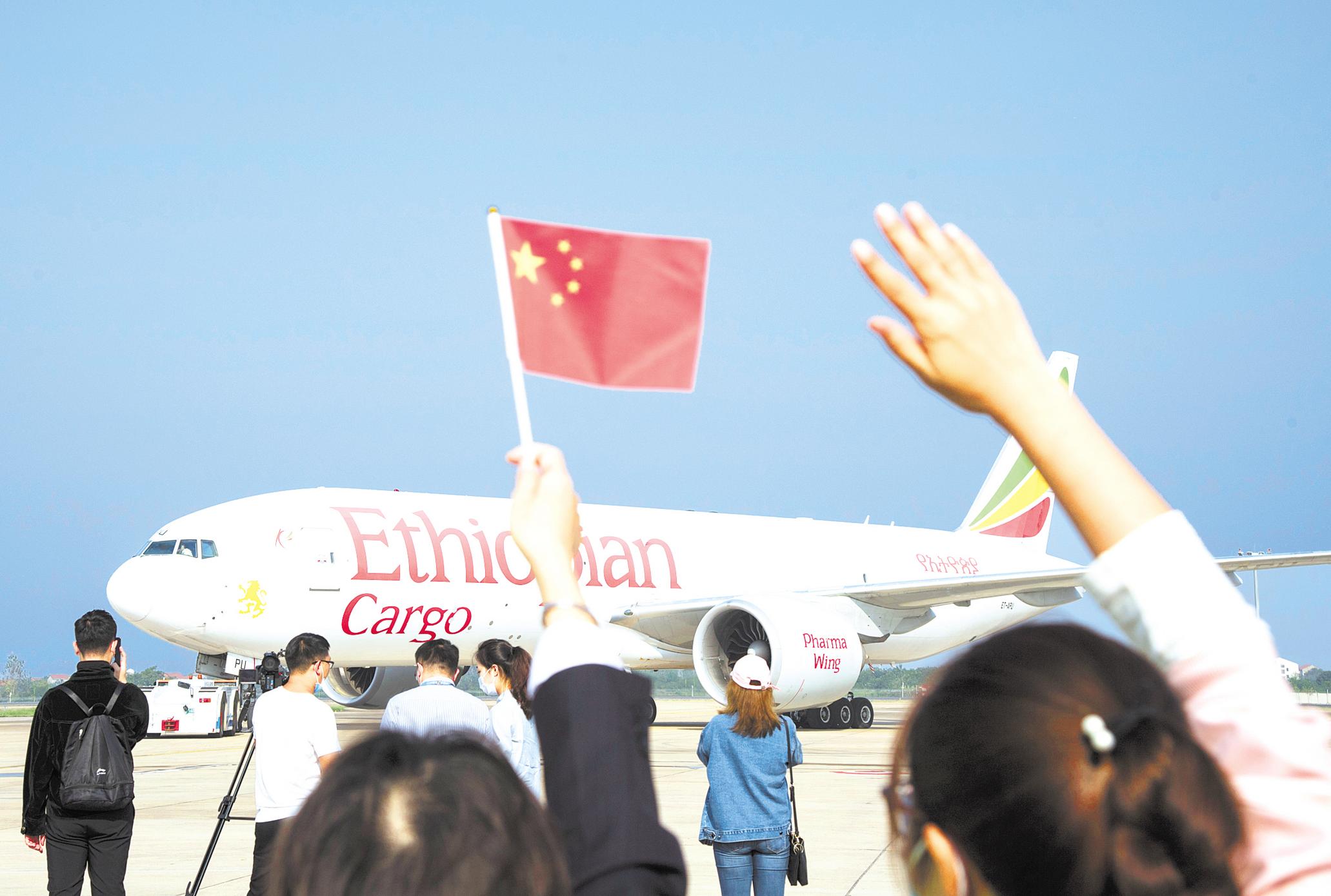 2020年9月30日上午,武汉至亚的斯亚贝巴国际货运航线的首个航班从天河机场起飞,飞往埃塞俄比亚。 (湖北日报全媒记者 魏铼 通讯员 盛鹏 摄)