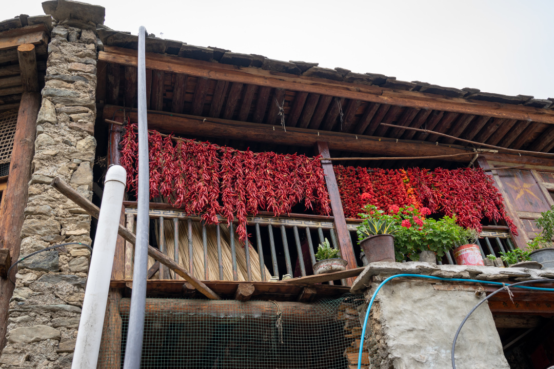 有趣的是,每户的正房大梁上都挂有猪尿泡,它们为了防止火灾,怕房屋相连有安全隐患,家里也有储有一大池水。而在四川这种地震多发的地方,俄亚村民应对地震自有“妙招”,就算经历了汶川、九寨沟等地震,这些蜂巢式的房子也毫发无损,就这么坚挺了数百年。