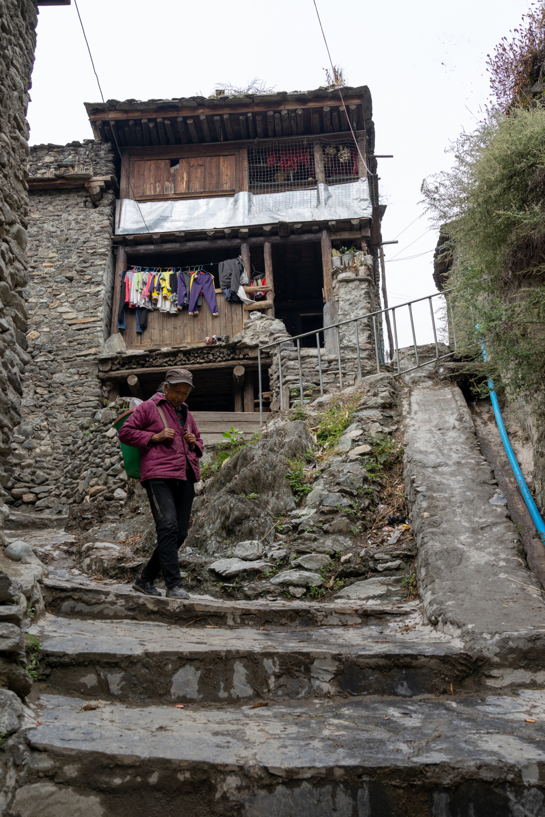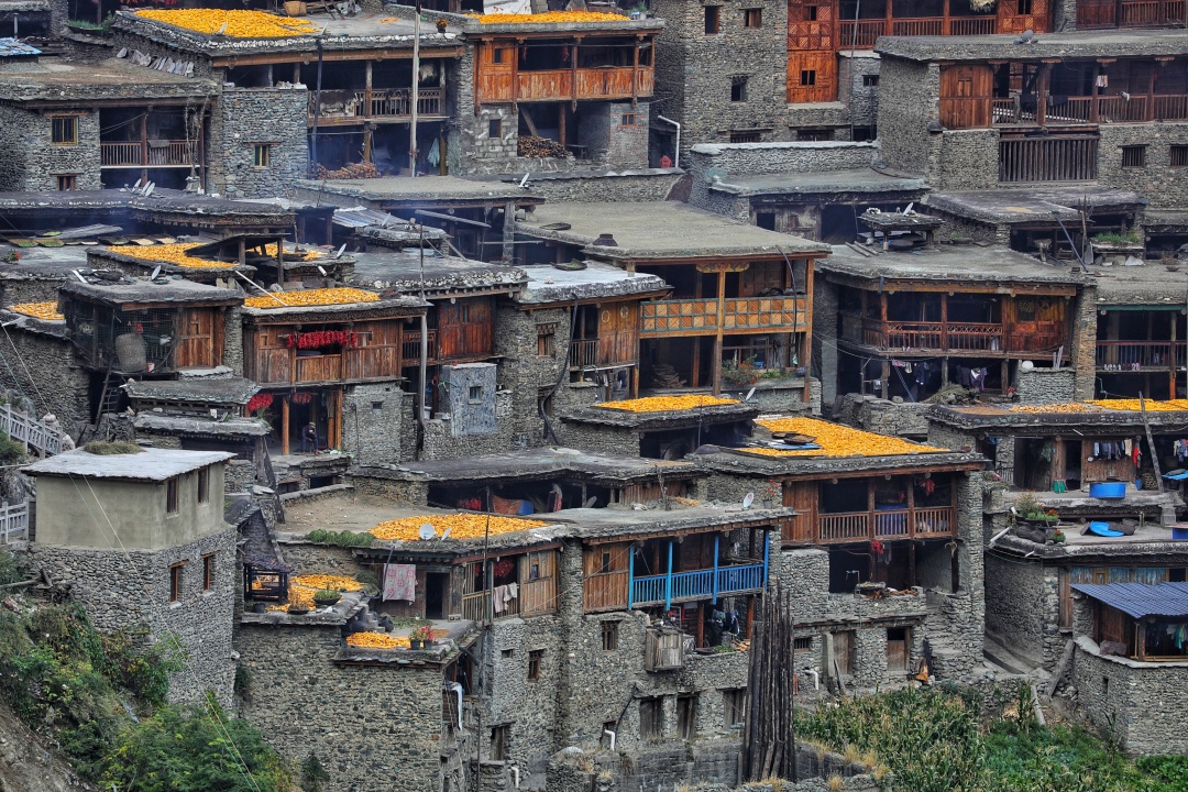 穿梭在蜂巢式的村寨里,宛如走进了迷宫。每个建筑之间的通道很窄,手扶之处都是鹅卵石墙。只需走进一户人家,就可以走遍整个村子,而屋顶的木梯样式各异,夜晚村民之间也能互通有无,每户人家的门都不会锁,真正做到了不分彼此。