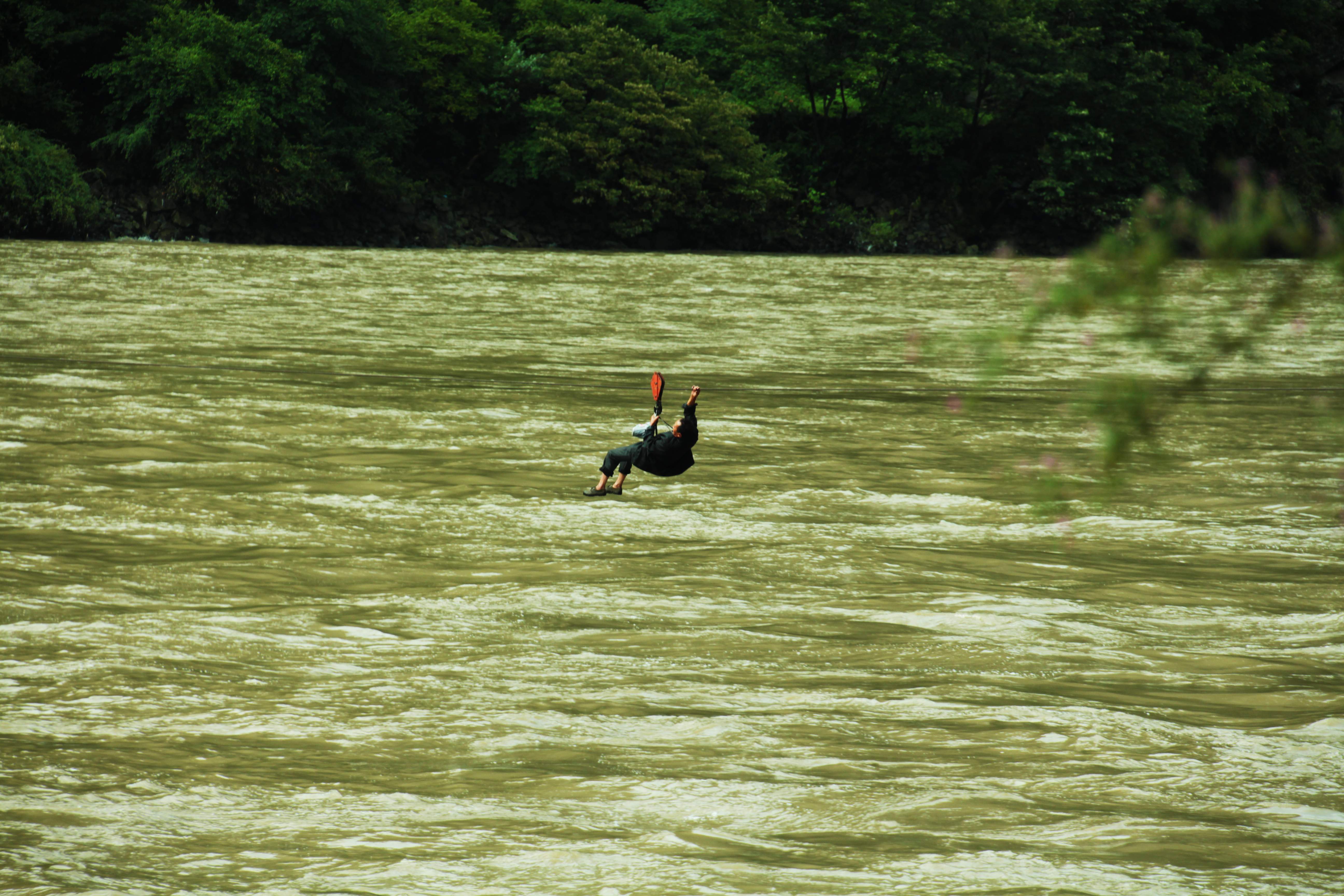 从泸沽湖向西北出发,经过木里县屋脚乡、侬吉乡,一路马不停蹄地到达了水洛河的呷波渡口,在公路开通前,这里是俄亚人进出的主要通道。如今,仍然有很多当地人坐着溜索“行走”于两岸,双滑轮下面吊着一个大竹篮,竹篮外绑满了货品,跟玩杂技似的。环顾渡口四周,两壁相峙,光看着就让人瑟瑟发抖。