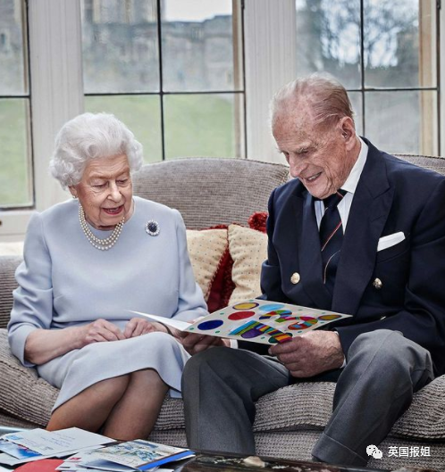 11月他们一起庆祝结婚73周年,乔治王子、夏洛特公主和路易王子这三个小可爱,还给曾祖父母送了一张五颜六色的手工卡片。