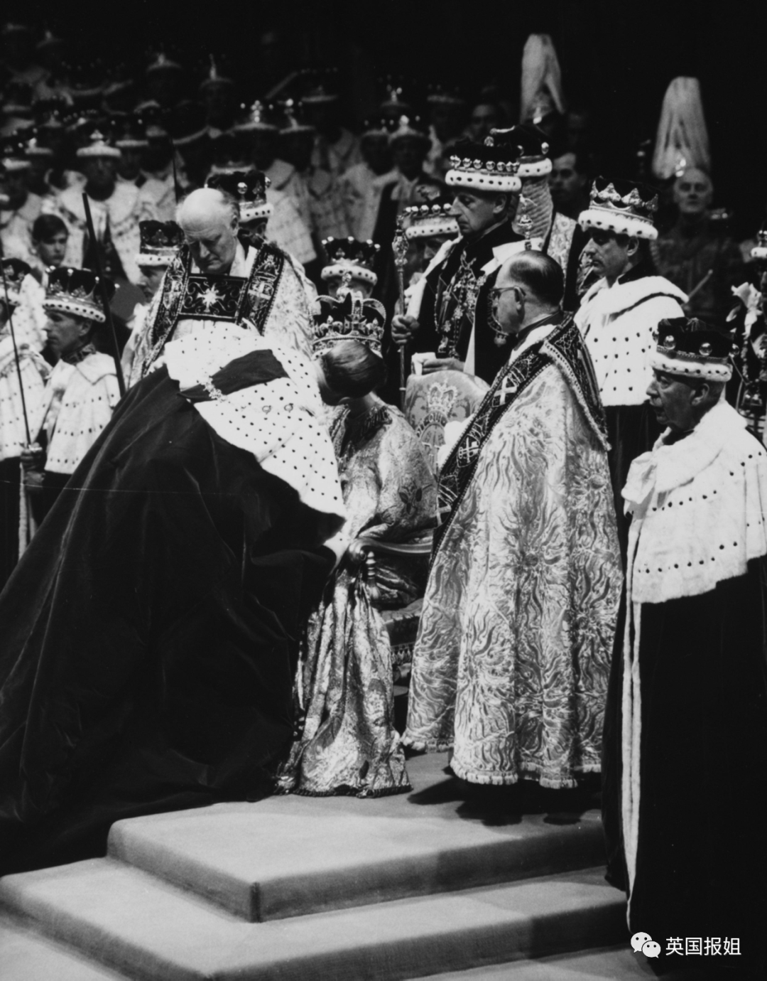 在她的加冕典礼上,菲利普是第一个,向这位年轻的新女王下跪的臣民。