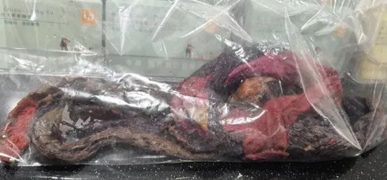 水水的呕吐物中居然有一块块碎布一样的东西。
