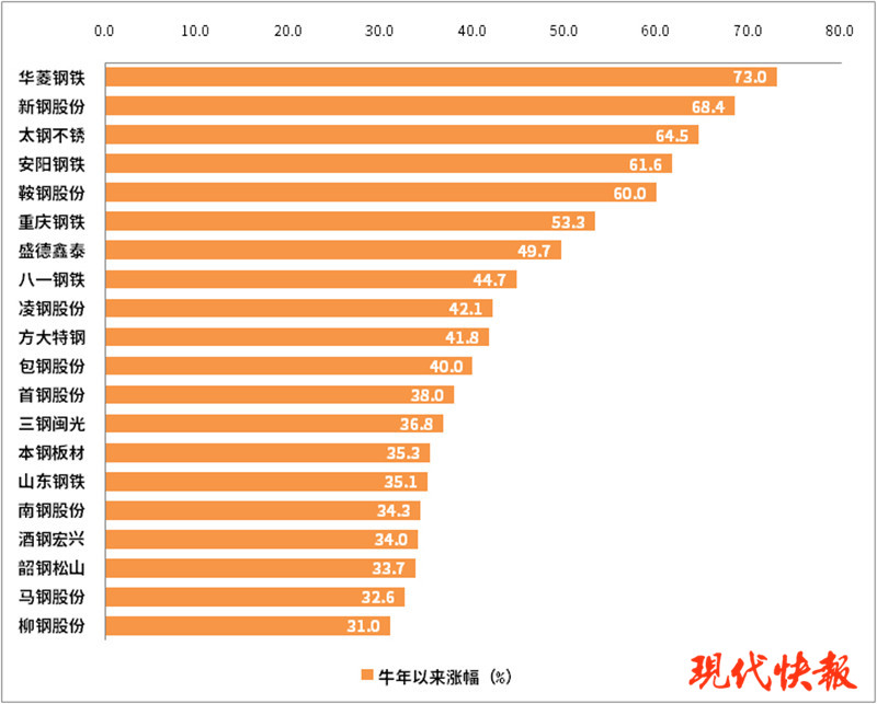 △部分钢铁股牛年以来涨幅