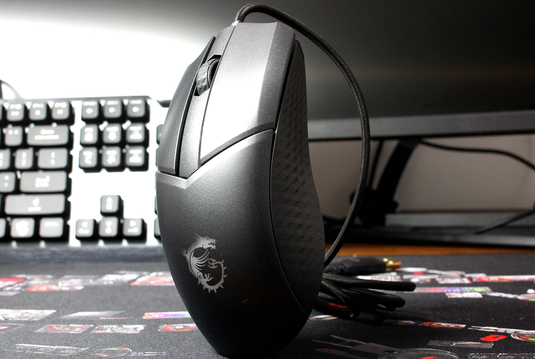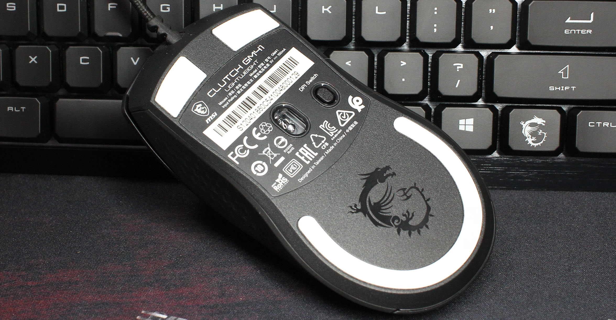 GM41采用欧姆龙6000万次微动,滚轮采用了高精度编码器。作为一款游戏鼠标,背面的RGB灯光是必不可少的,微星Logo采用透光设计。有线鼠标配备了微星FriXionFree编织线,能够减少拖拽感,同时减少与鼠标垫的摩擦,保证高速移动的性能。