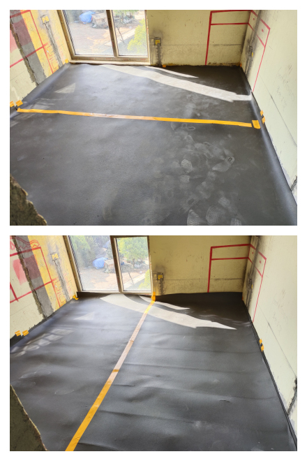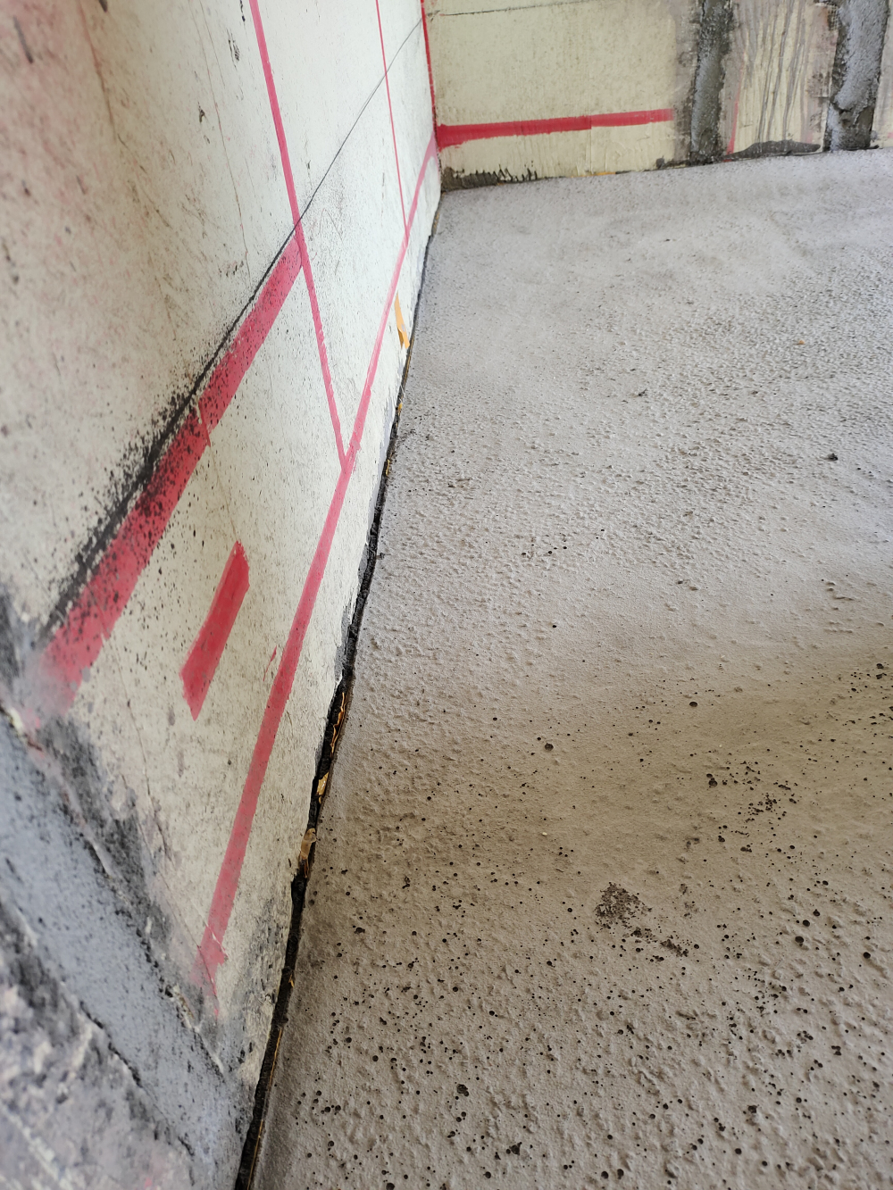 15. 可以看出,新做的地面和墙体是分离开的,这就是浮筑地板。找平层与原地面、原墙体都分离开,打断了刚性连接,阻隔了低频噪音在楼板中的传递。