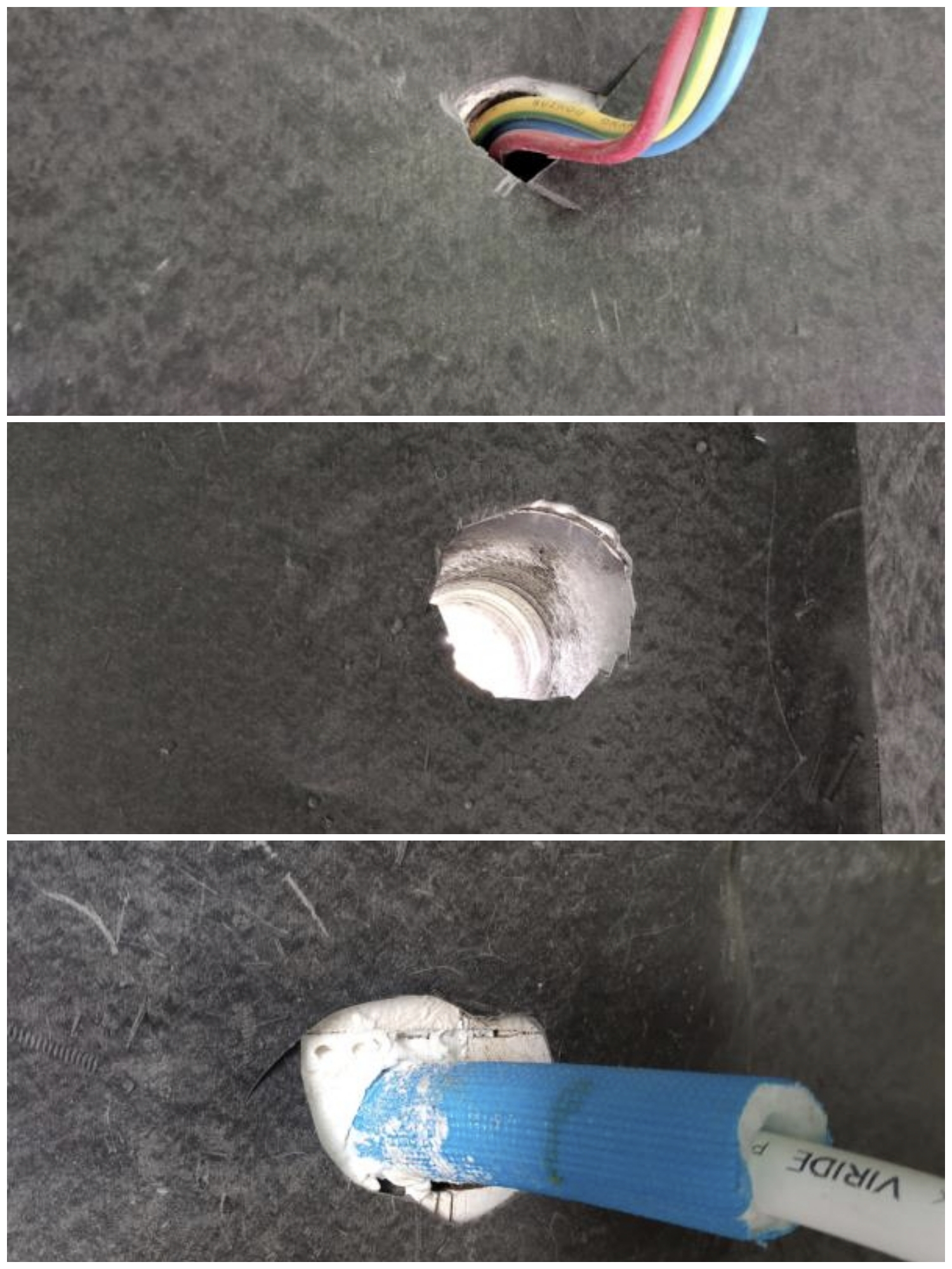 11. 剪短的钢丝需要折弯,避免扎破减震垫,隔音毡很结实不怕扎。