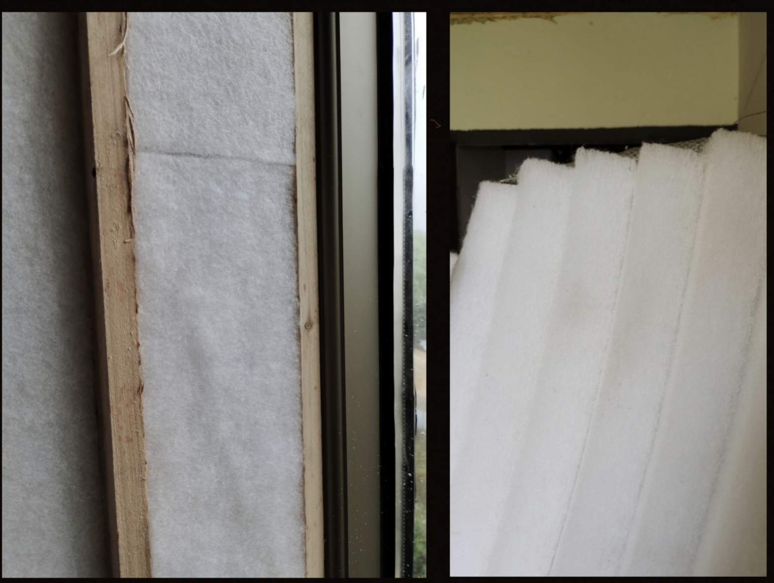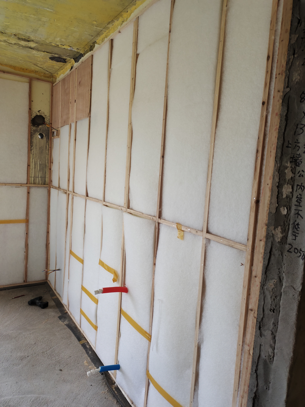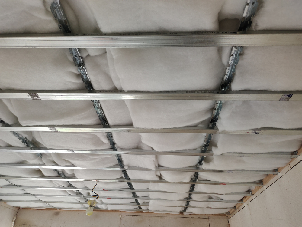 5、填充吸声棉,聚酯纤维块棉无气味、无粉尘、不扎手,符合家装环保,按龙骨架内空尺寸裁剪。