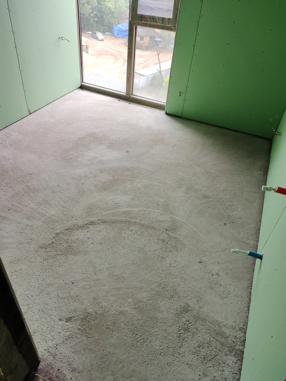 进场阶段:水电完工之后,泥工做第一遍找平,保证地面是平整的。