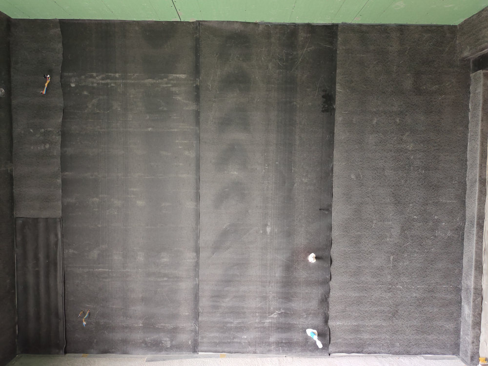 6. 开始铺设3MM隔音毡,两块搭接处延伸2CM,相当于压另一块的边缘。
