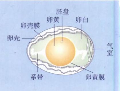 (1)卵壳:保护作用、和外界进行气体交换 卵壳膜:保护作用