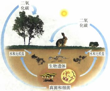 ②生态系统包括生物部分(植物---生产者;动物---消费者;细菌、真菌---分解者)和非生物部分(水、阳光、空气等)。