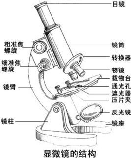 ④需要强光时可选择凹面镜和遮光器上的大光圈;需要弱光时可选择平面镜和遮光器上的小光圈。