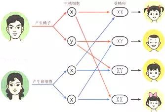 (2)女性排出一个含X染色体的卵细胞。精子的性染色体有两种,一种是含X染色体的,一种是含Y染色体的。它们与卵细胞结合的机会均等。因此生男生女机会均等。