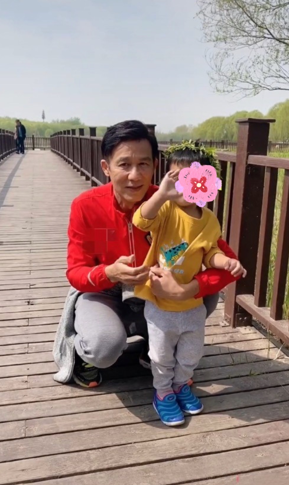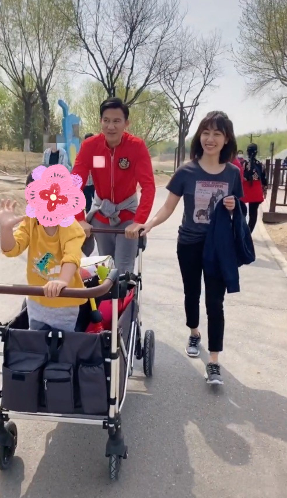 从这段视频中看到了李子雄带着娇妻、两岁的儿子一同外出踏青,一家三口其乐融融。李子雄推着大型儿童车,两岁的儿子站在车内“张牙舞爪”,而王雅琦一脸幸福的笑容看着儿子,整个画面充满了温馨幸福感。远看李子雄,只见他身着大红色的外套,显得非常年轻,一点不觉得他已经到了耳顺之年。不过另外一张他与儿子的近照,还是能看到他脸部和颈部的皱纹,这也合情合理,毕竟61岁了,怎么可能没有年老的痕迹?且这才是年过60岁的大叔应有的容颜,当然也因为这样,这一家三口出行就有点像三代人同框,画面的确很幸福,很温馨,但如果想到是夫妻与儿子同框,多少还是显得有点微妙,特别是父子合照很像爷孙。