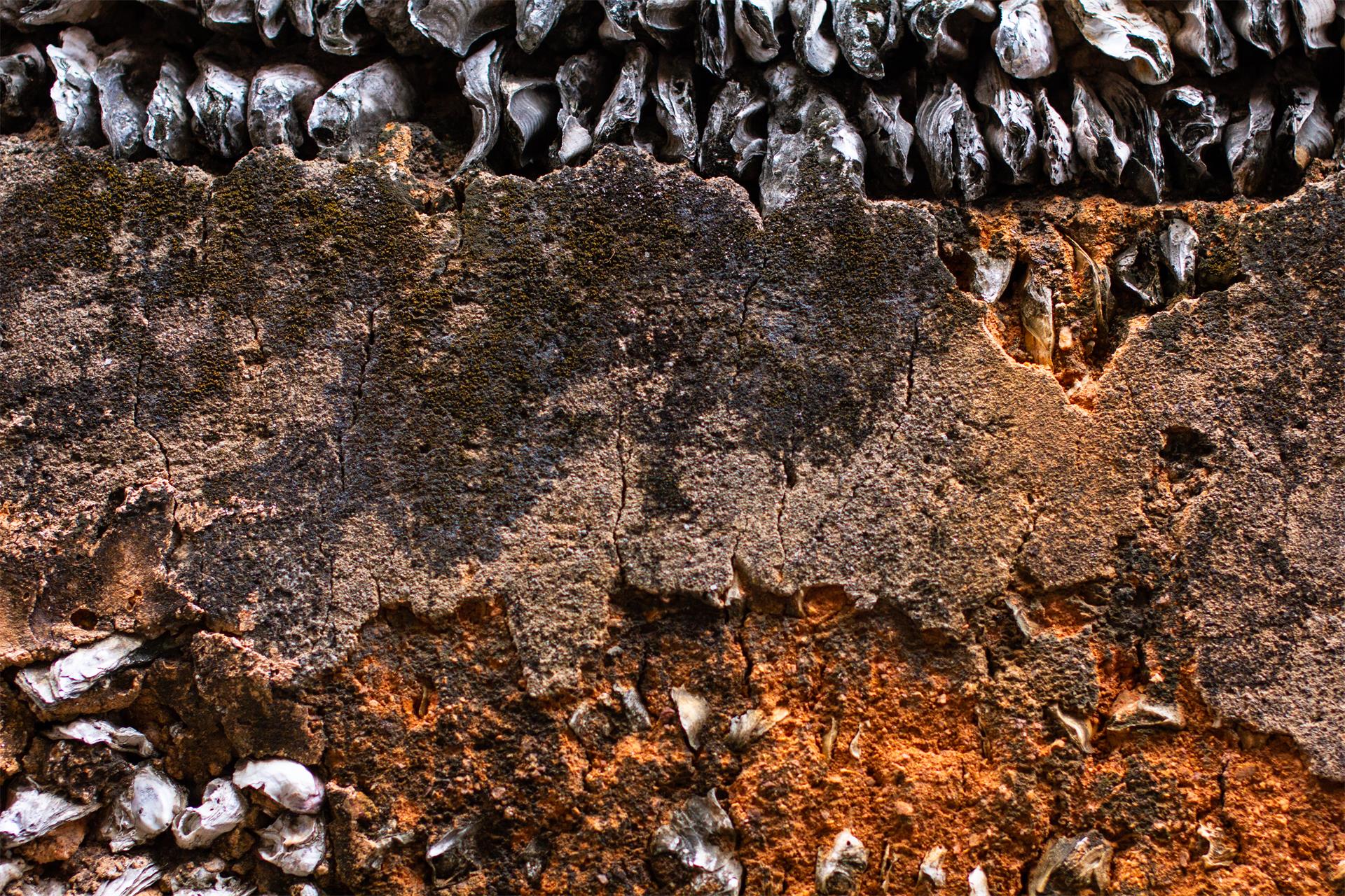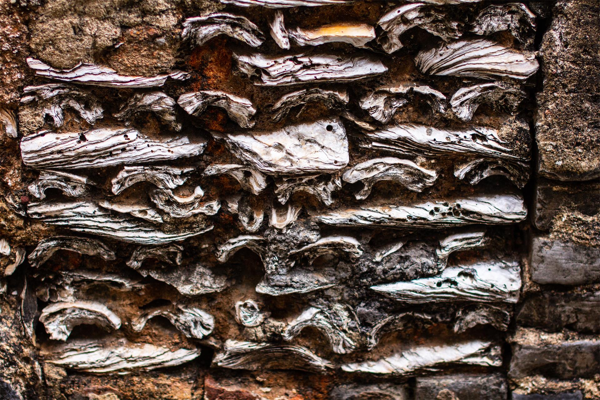 第二,防水防潮。蚝壳墙遇水不溶,蚝壳呈鳞状以向下45度的方式整齐垒砌,壳尾向外,方便雨水下泄,避免雨水浸入内墙,保持室内干爽。