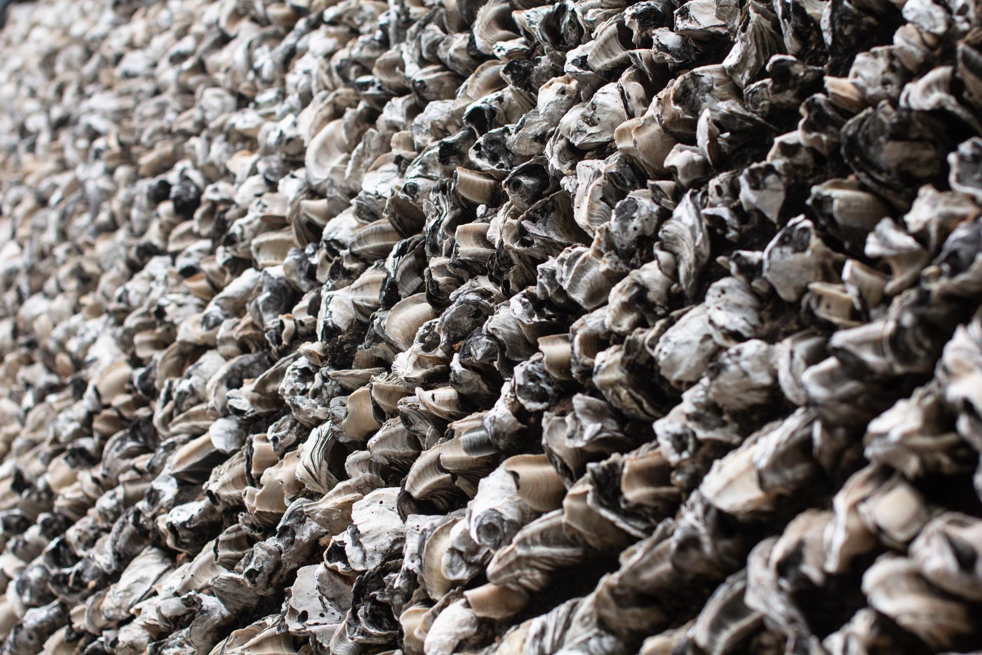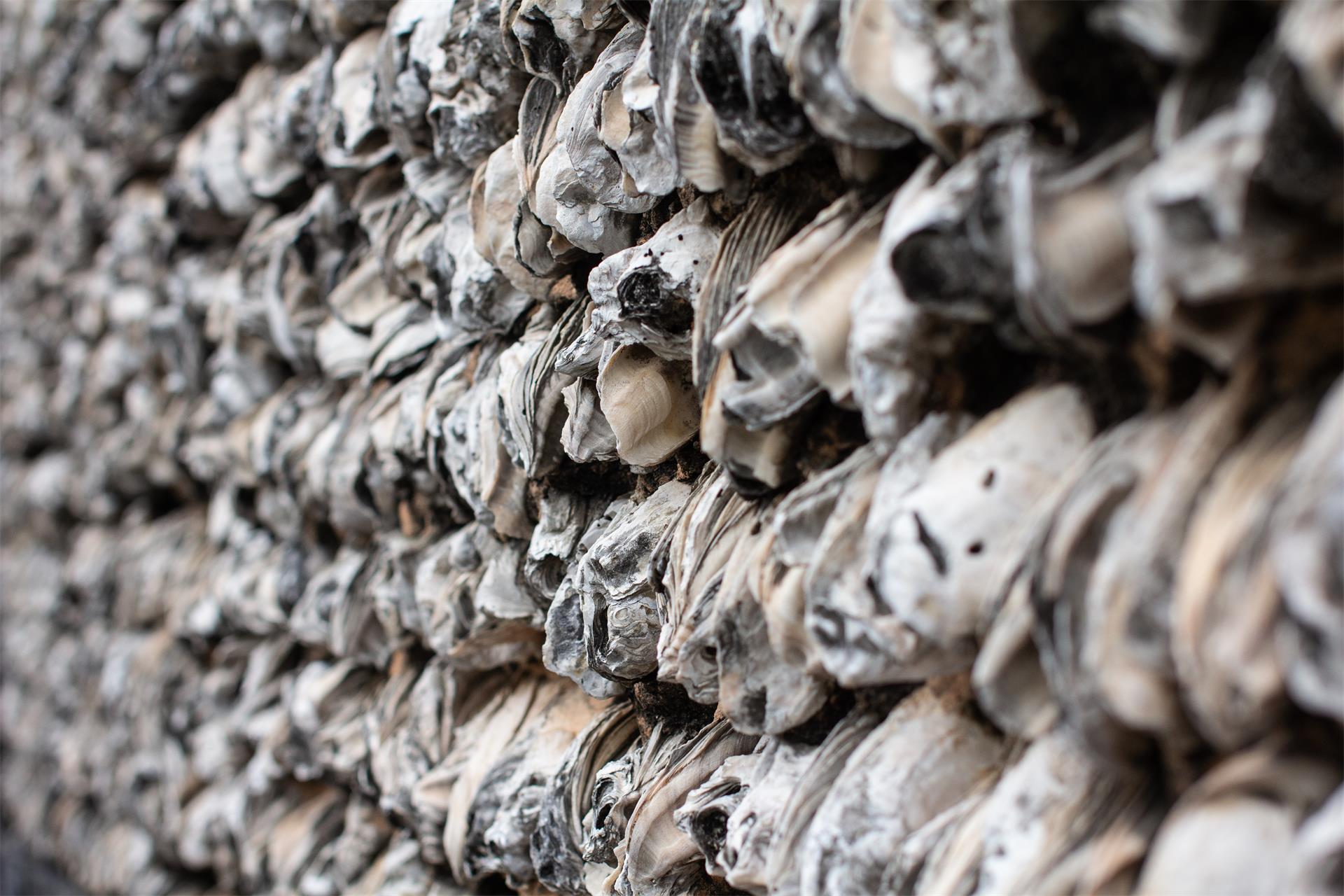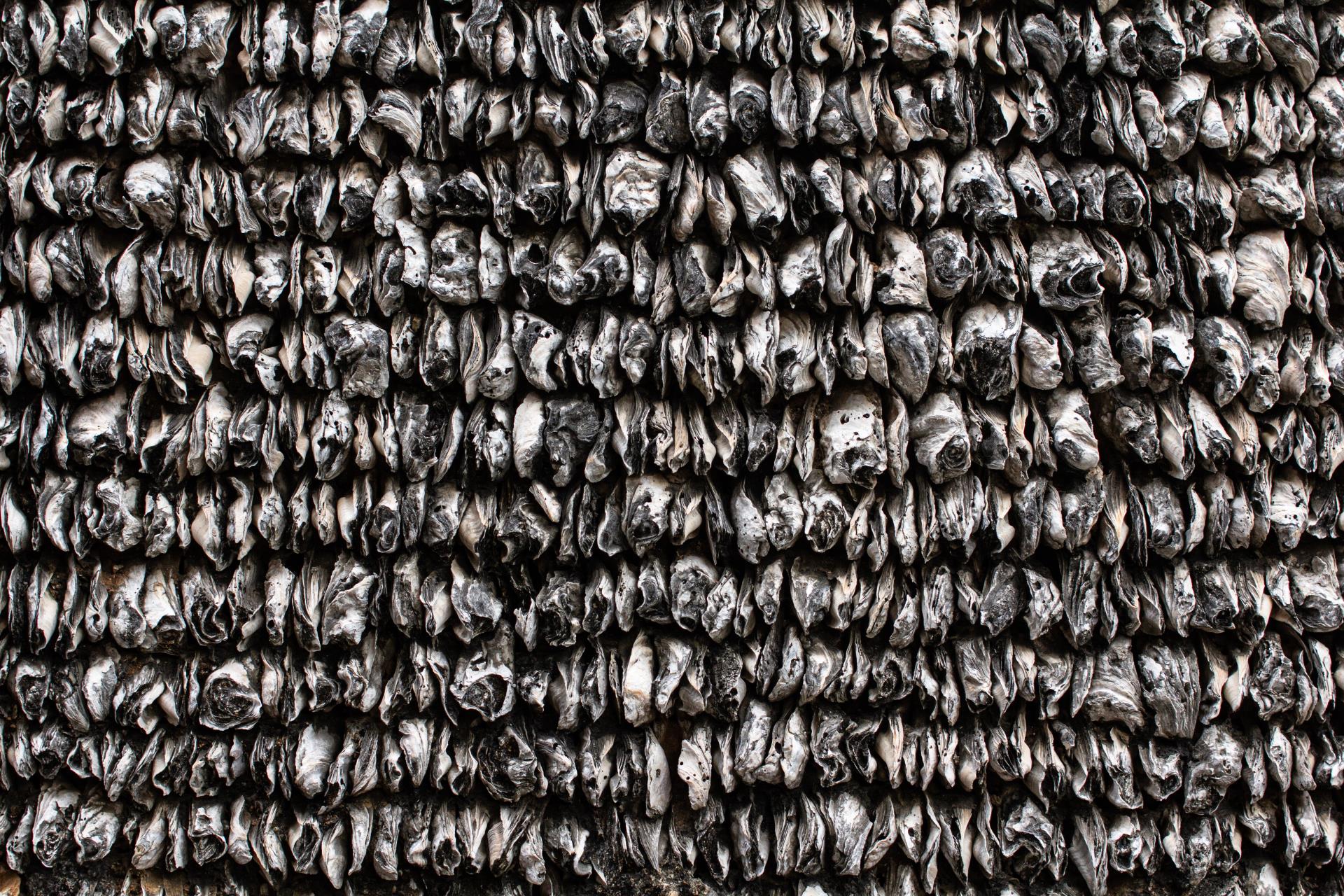 蚝壳墙上,堆砌着密密麻麻的生蚝壳,摸上去非常牢固、坚硬。