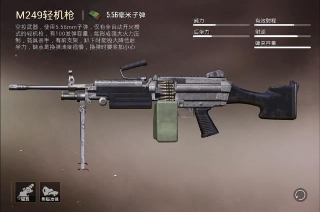 M249轻机枪的出现方式改成了在全地图地面产出,替换对于M249轻机枪在以前的空投或超级空投。小幅优化UAZ越野车以及Buggy沙滩车在游戏里的性能体验,又在一定程度上增加Ladanica越野车及迷你巴士的耐用性。
