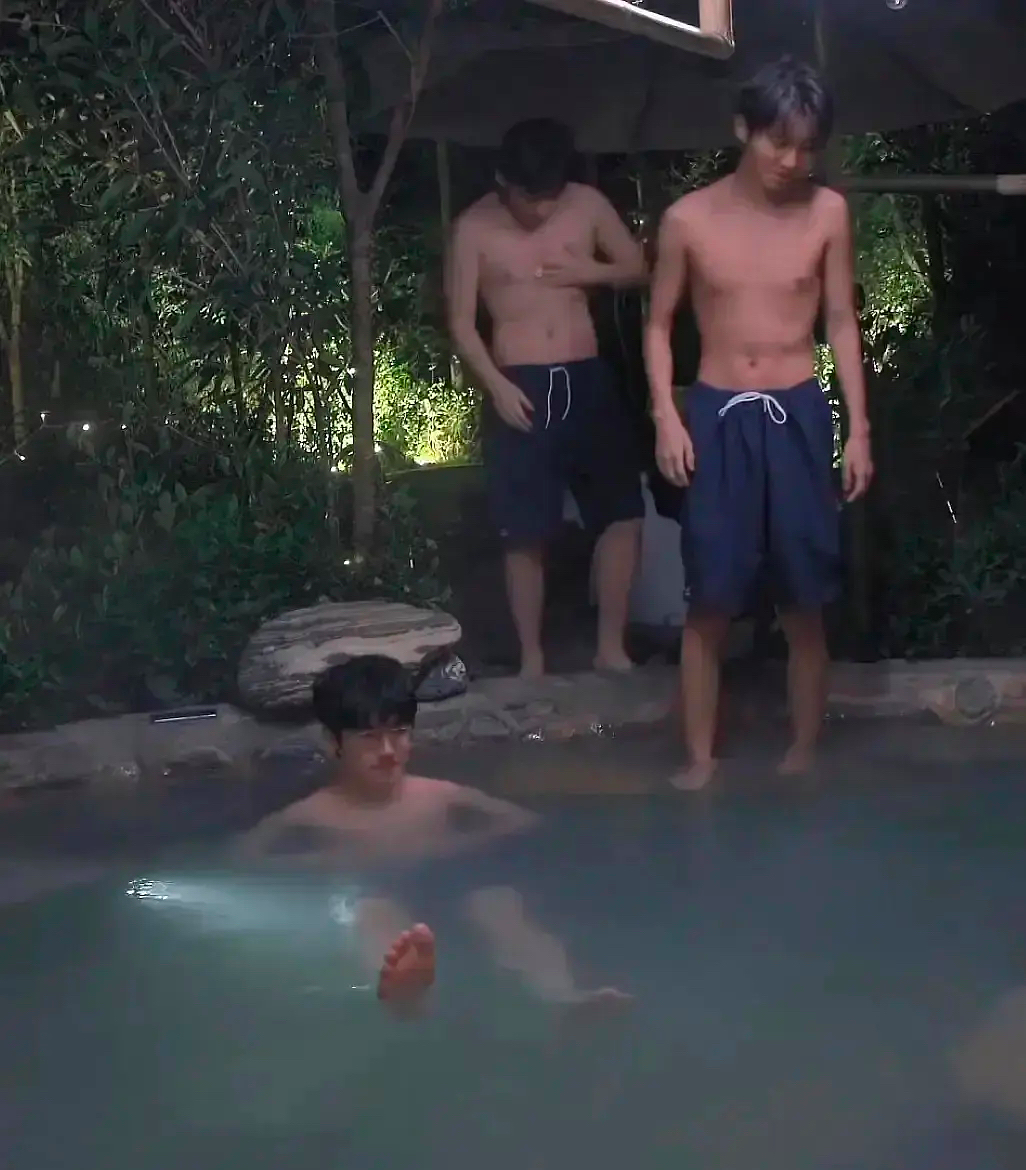 但是看到泡温泉的那里,大家都在吐槽他们仨身材管理太差,尤其刘昊然董子健这小肚腩,也太圆润了。