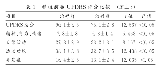 研究人员对38例帕金森受试者进行鞘内注射干细胞,随访1个月,UPDRS分值均有所下降(分值越低,表示神经功能缺损越轻),所有受试者运动症状得到不同程度缓解,精神、行为、情绪的评估分值有所下降,说明非运动症状也得到改善。
