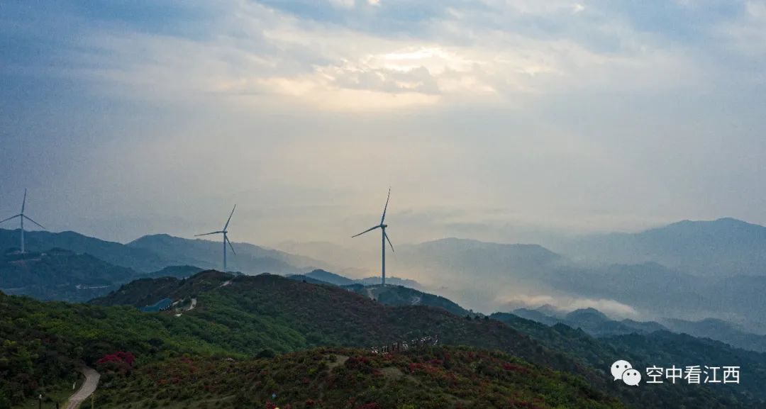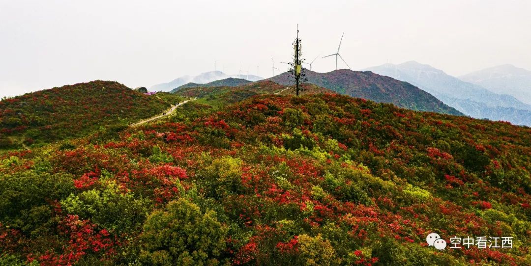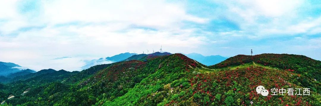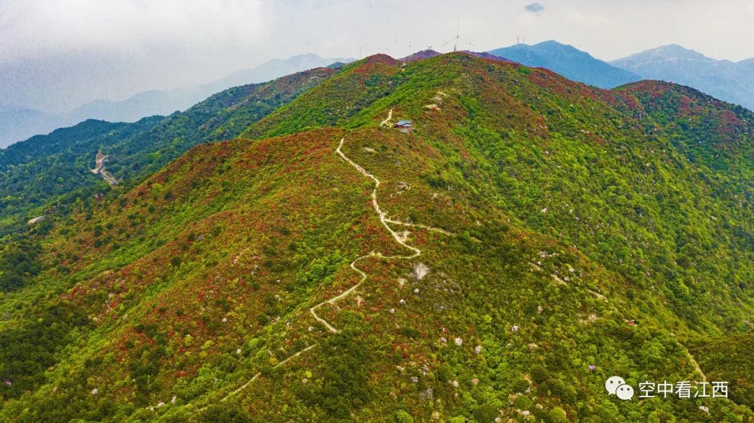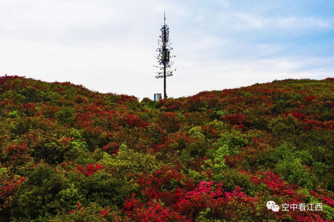 4月12日,航拍江西省赣州市石城县八卦脑景区的杜鹃花红染漫山遍野。