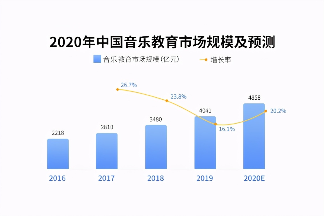 据艾媒数据显示,2020中国音乐教育规模将达3.09亿人,市场规模将达4538亿元。