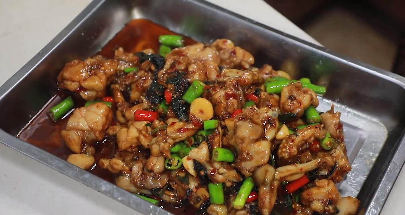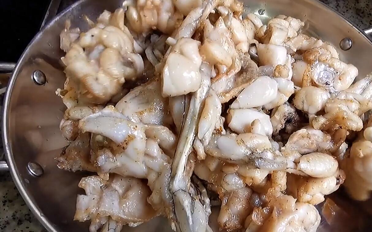 2、牛蛙炸制的时间不要太长,炸至定型后微微发黄就可以,这样做出来的牛蛙肉质更加鲜嫩。