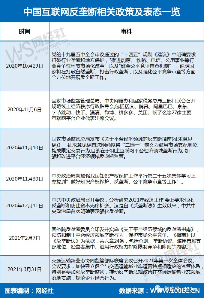 2020年11月6日,国家市场监督管理总局、中央网信办和国家税务总局三部门联合召开规范线上经济秩序行政指导会,包括百度、腾讯、阿里巴巴、京东、字节跳动、快手、滴滴、微博、拼多多、美团、饿了么等27 家主要互联网平台企业代表出席会议。