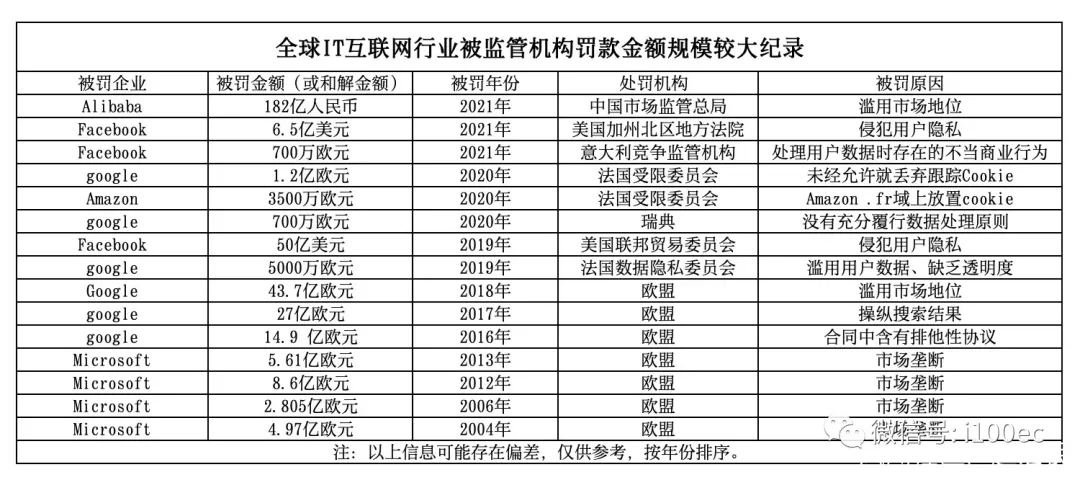 放眼全球,反垄断更是国际“惯例”。作为全球电商巨头的亚马逊也是屡遭美国、欧盟反垄断机构调查。据不完全统计,谷歌、微软、Intel、高通、Facebook等公司都是反垄断打击的重点对象。这一次针对阿里巴巴的反垄断罚款金额,已经在全球范围内“名列前茅”。