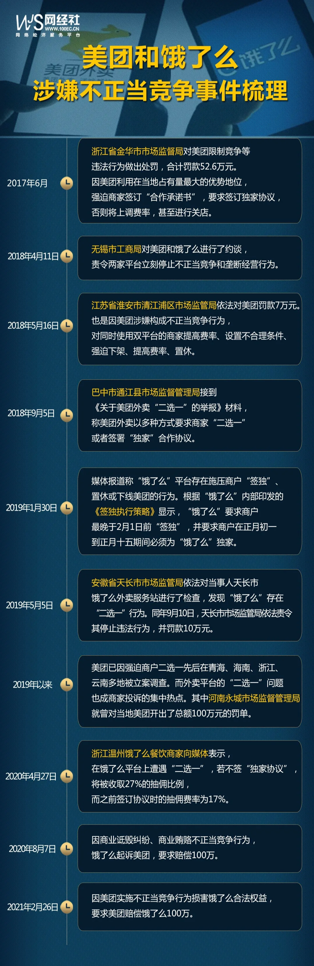 事实上,在线外卖头部平台之间的“掐架”要求商家二选一战队等事件屡见报端。此外,因涉嫌不正当竞争和垄断经营行为,美团和饿了么也曾被工商部门多次约谈并罚款。