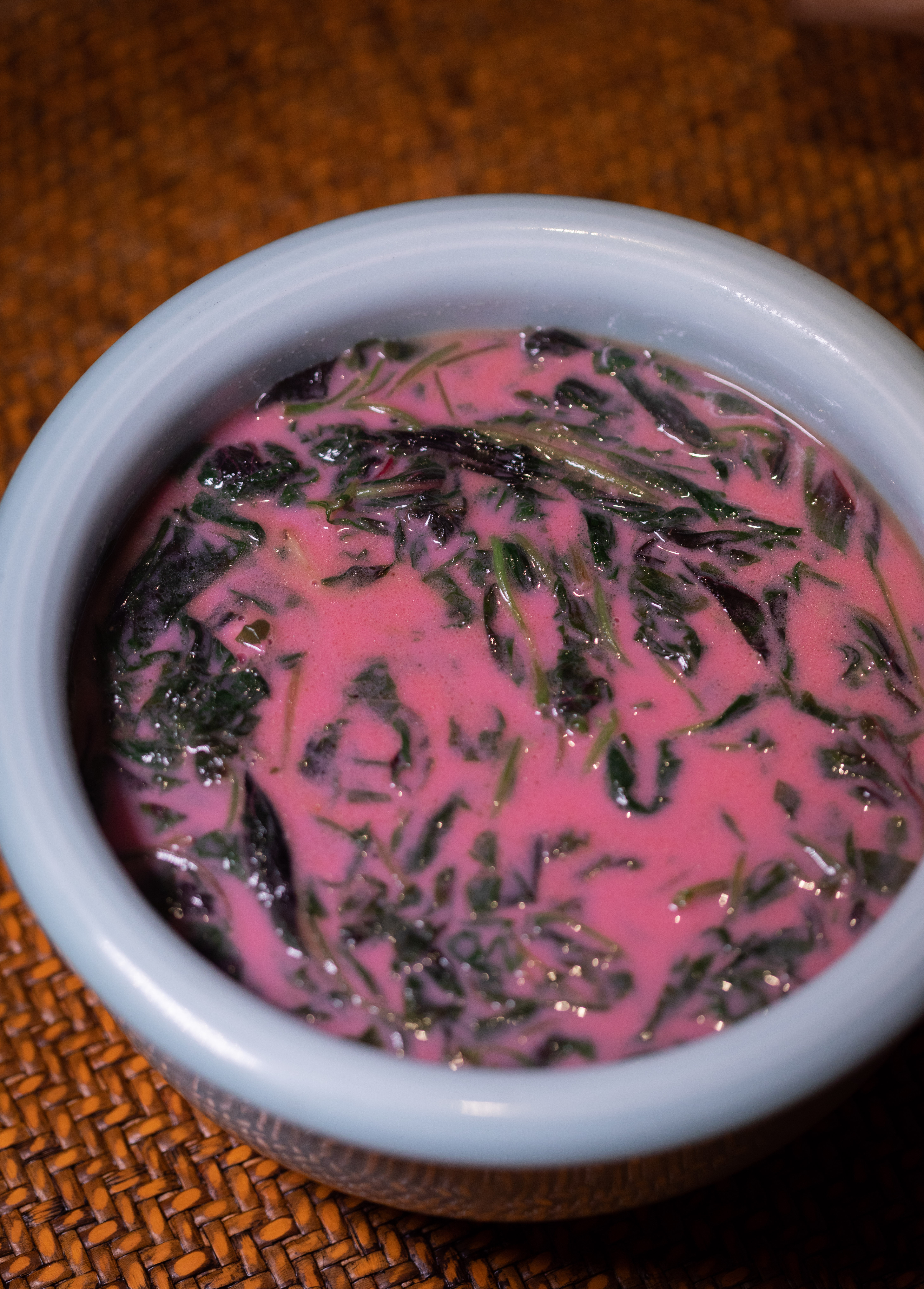 想吃点不辣的,建议你一定要点份骨汤湖南红苋菜,就知道它绝对当得起“湖南汤品一绝” 的称号。红苋菜作为湖南湖北的当家青菜,鲜嫩多汁的口感让它成为了不少人的心头好。从湖南当地空运而来的新鲜红苋菜,仔细摘出口感最好最嫩的部分,三斤菜摘出一斤,看似普通,却是真的费工费力。与温润醇厚的骨汤同煮,奶白色的骨汤浸润了红苋菜的颜色,是喜人的粉。喝一碗,从里到外舒服极了。