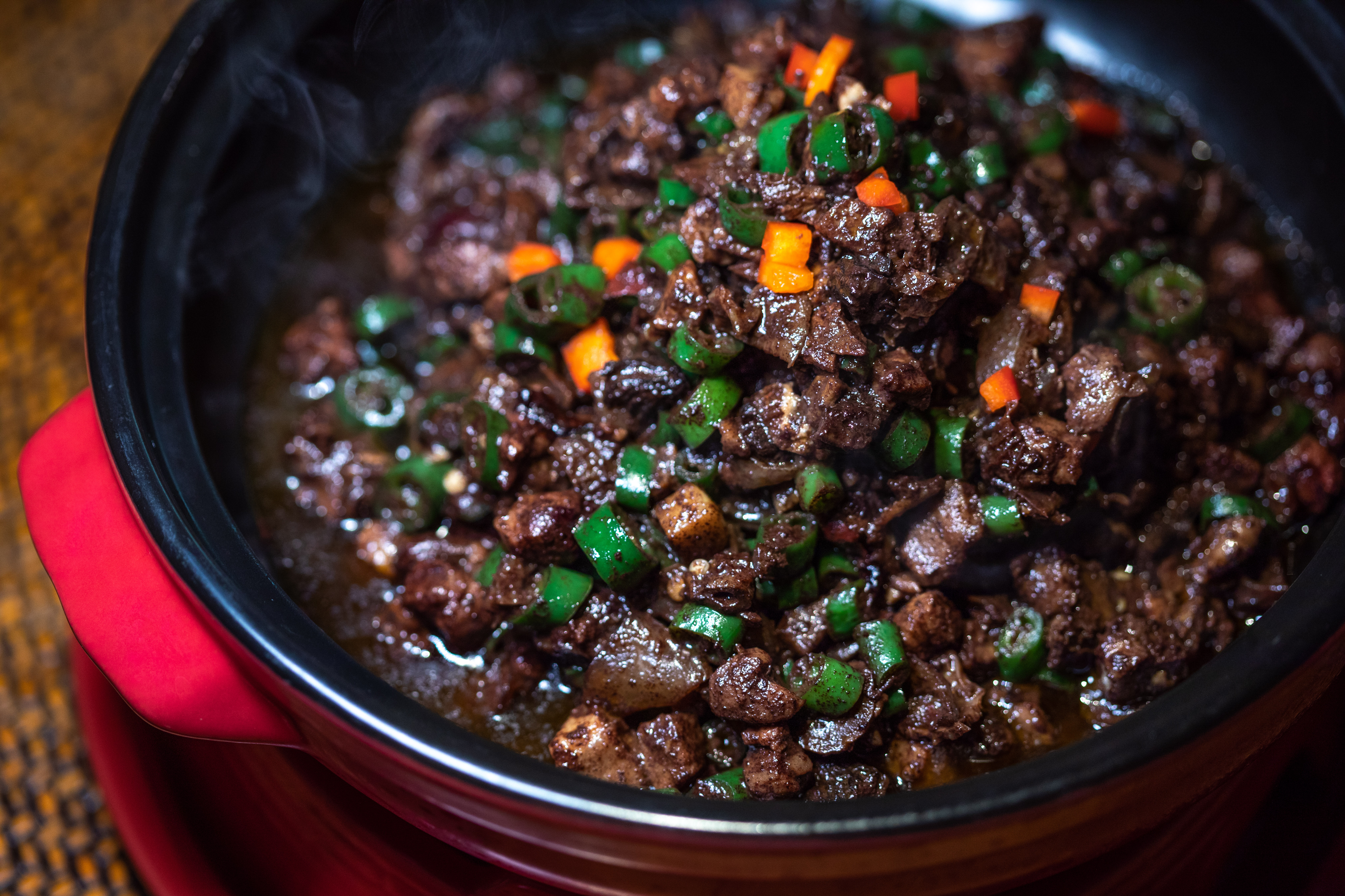 湘菜中,有个庞大的菜系是肥肠,每个地方逐渐形成一些特色的肥肠菜。酷湘的常德土钵肥肠,是经过精心选料的。为了确保肥肠足够干净,光是清洗这一步就耗费了大量的时间和精力。洗净的肥肠还要将每一段精细区分,肠头需得切成肠段,小肠需剖开切片,而两者中间的大肠部分则要切成圈状,这样才能将肥肠的干香滋味发挥到极致。每一份肥肠,都按比例分别搭配了肠头、大肠、小肠,不同部位的口感,或厚实,或爽脆,混合在一起,再配上下面搭配的笋丝,让人忍不住再来一碗米饭。
