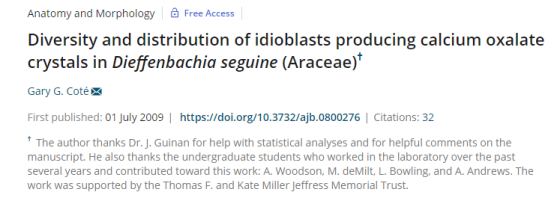 当然,老早前就有科学家注意到草酸钙针晶,也发表了相关论文: