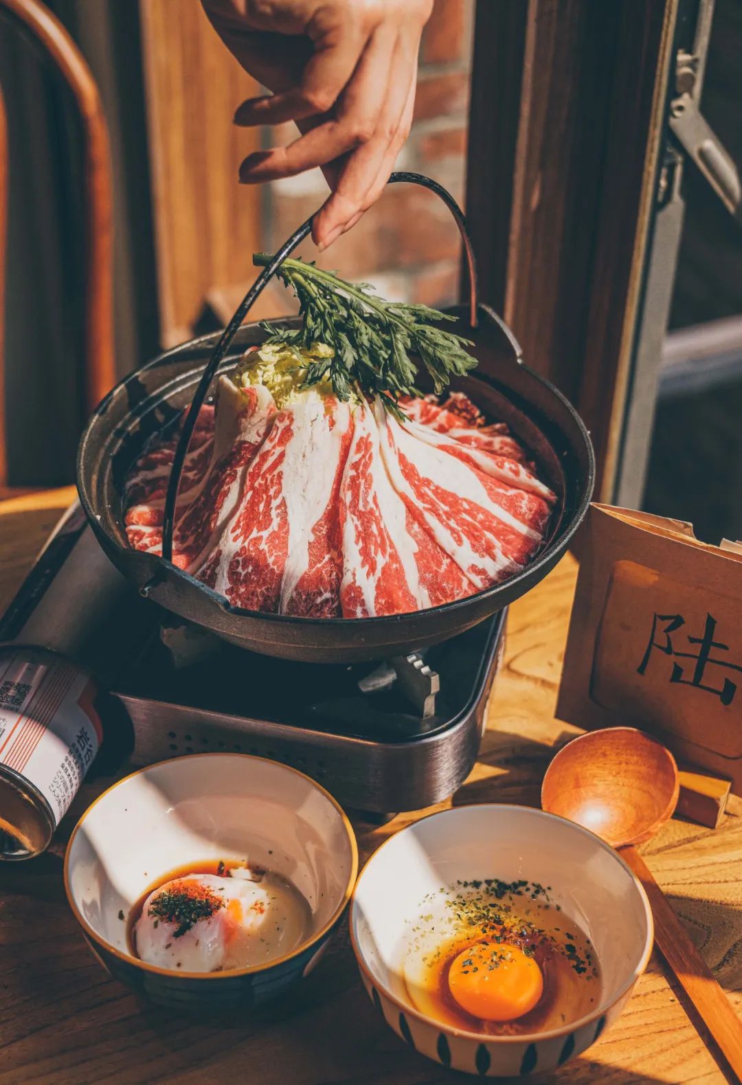 C:当然是我们的招牌寿喜锅。我们比较特别的一点是,里面的牛肉,从澳洲进口的上肩肉到和牛 A5,有不同价位的肉质可以选择。一分钱一分货,全都是进口牛肉,可以满足对肉质有讲究的客人。