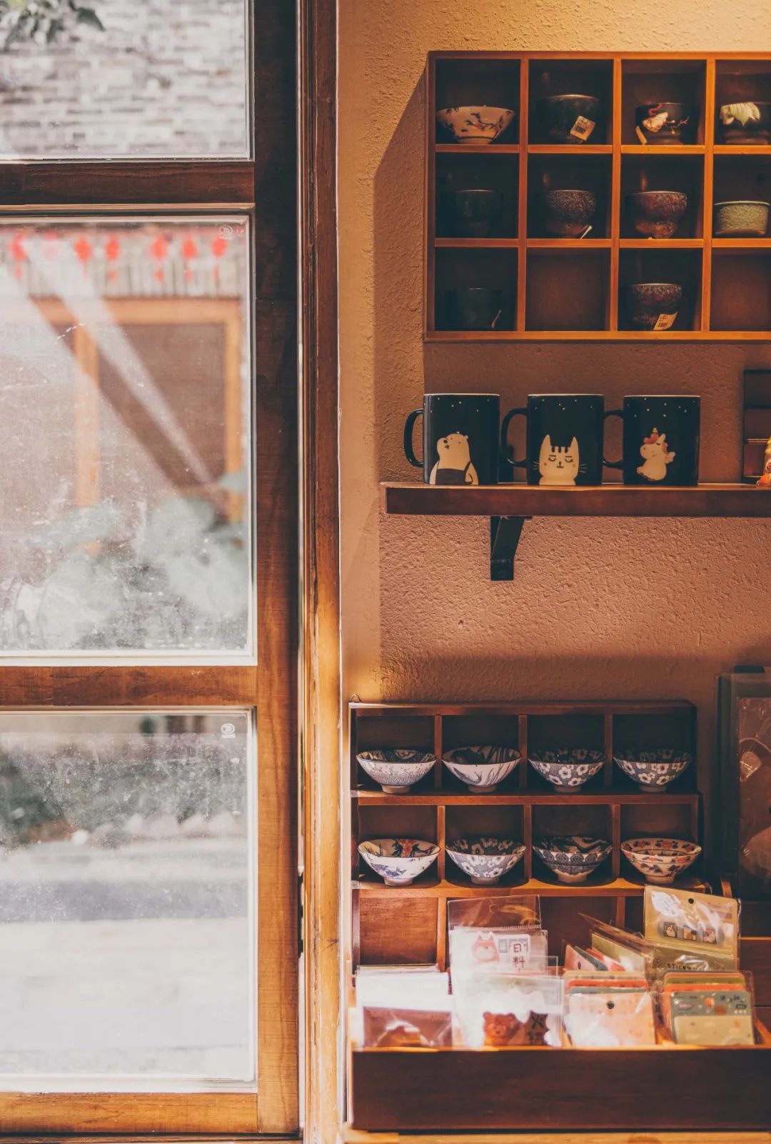 室内,则主要还是依据日本乡村杂货店的模样。比如标志性的一整面“碗墙”,还有日式空间里的经典木质材质的使用。“不过,不管是大良店还是天地店,我们都加入了自己设计的一些手绘元素,动漫化可爱化一些,这样会更贴近年轻人的审美。这是日本乡村杂货店没有的感觉。”Carrie 介绍道。
