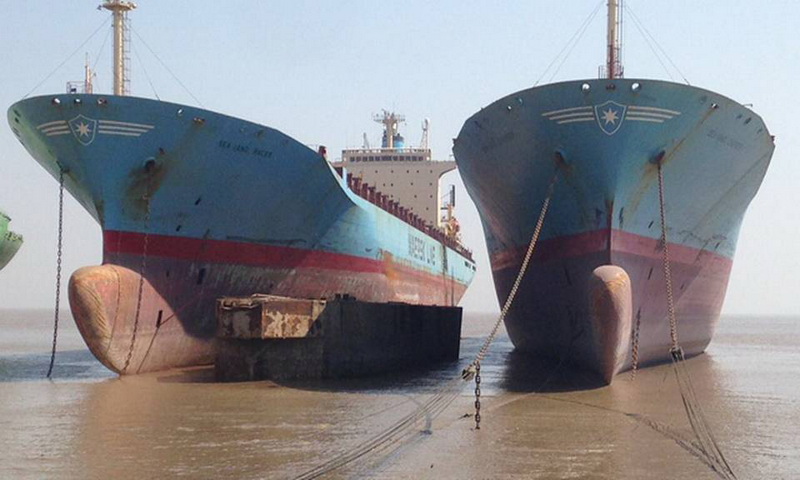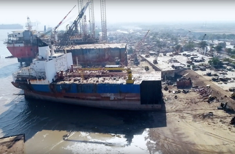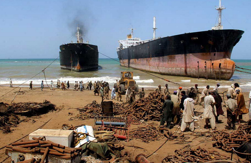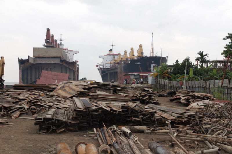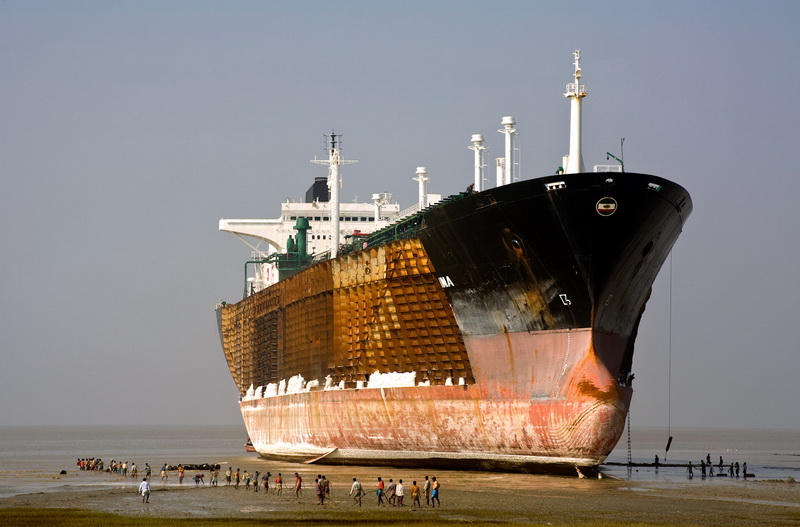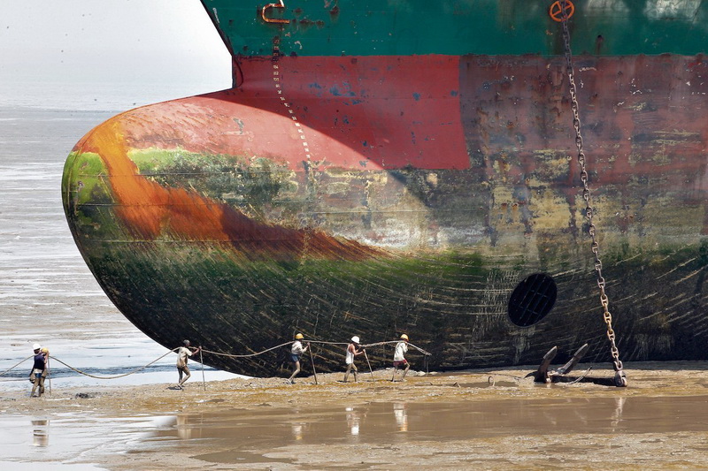 孟加拉吉大港的拆船场,这里的海岸更适合船舶冲滩