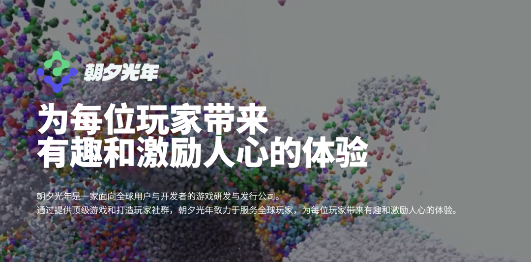 没问题,今年,字节跳动将原来与游戏毫不相关的业务「朝夕日历」改造成游戏品牌「朝夕光年」,从其官网介绍可一窥字节的战略方向:朝夕光年是一家面向全球用户与开发者的游戏研发与发行公司,通过提供顶级游戏和打造玩家社群,朝夕光年致力于服务全球玩家,为每位玩家带来有趣和激励人心的体验。