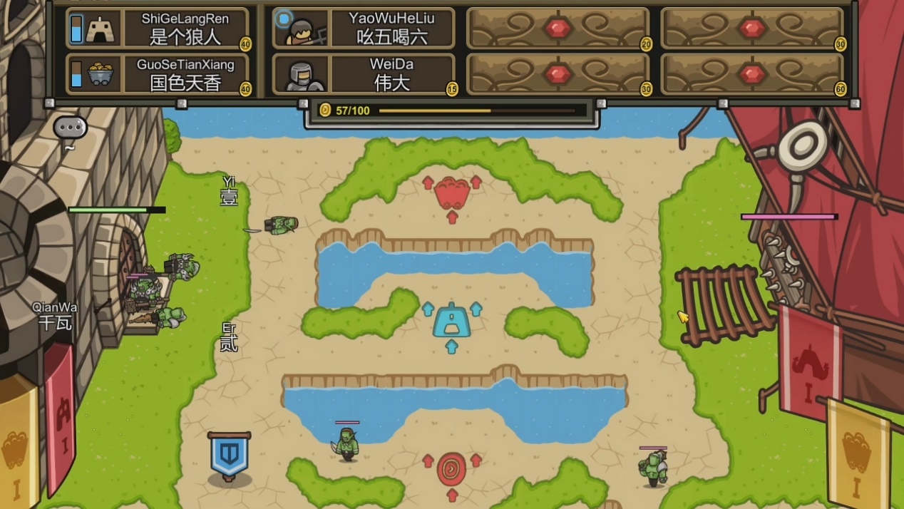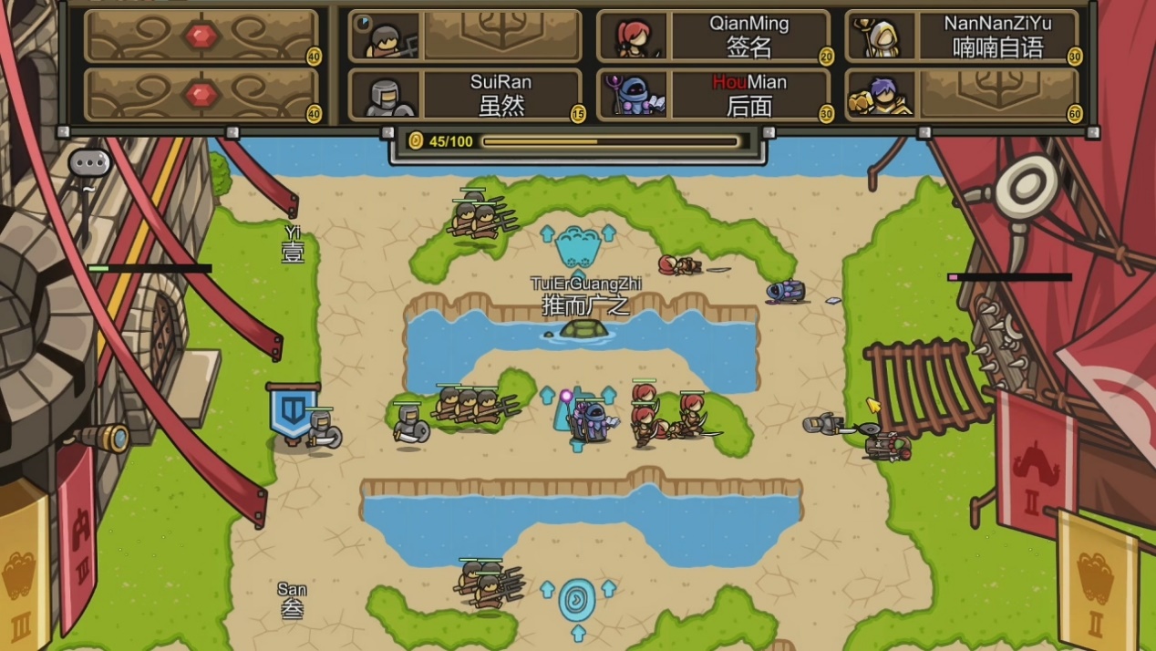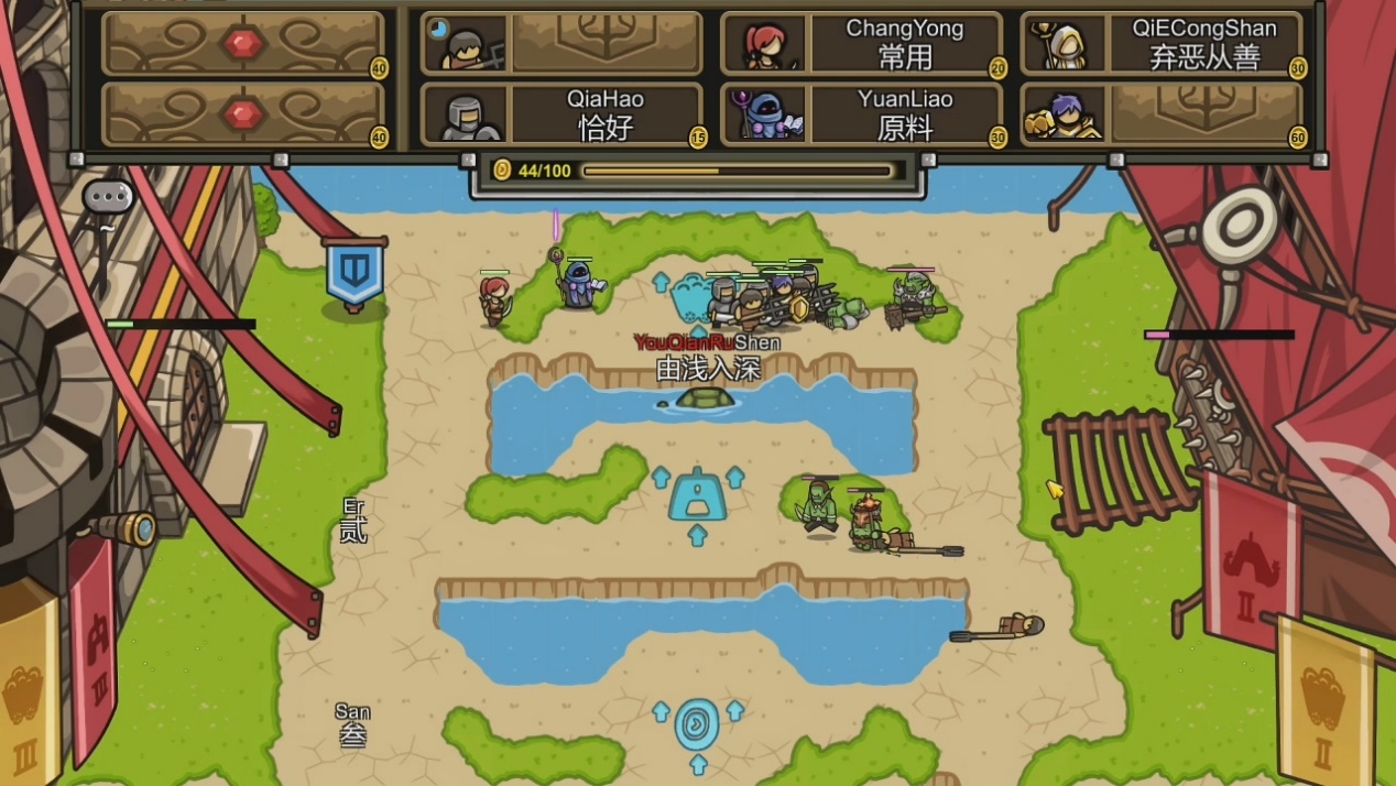 当然,最重要的一点来了,以上所有的游戏元素,从资源升级到基地升级,从选择出兵/防守路,再到选择出兵兵种,最后再到基地的箭塔防守动作,全部依赖一个操作——打字,看屏幕上相应的基地、矿山、兵种、河道生物的图标下出现的词汇和拼音,快速打出拼音,完成相应的操作。