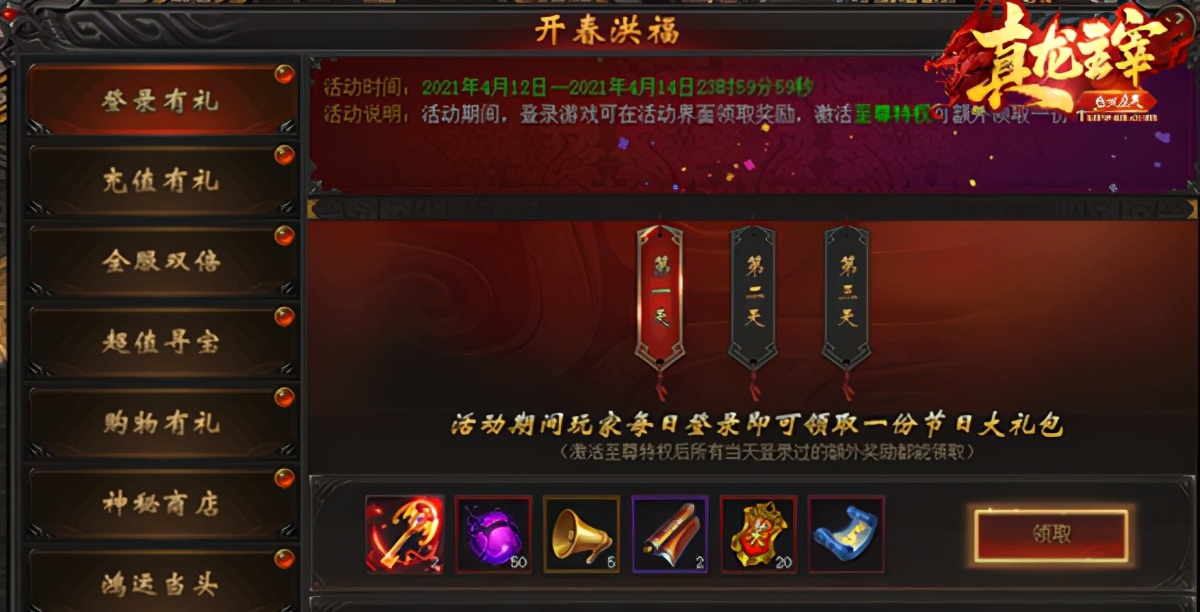 【登录即可有礼品,激活至尊特权,双重礼品】
